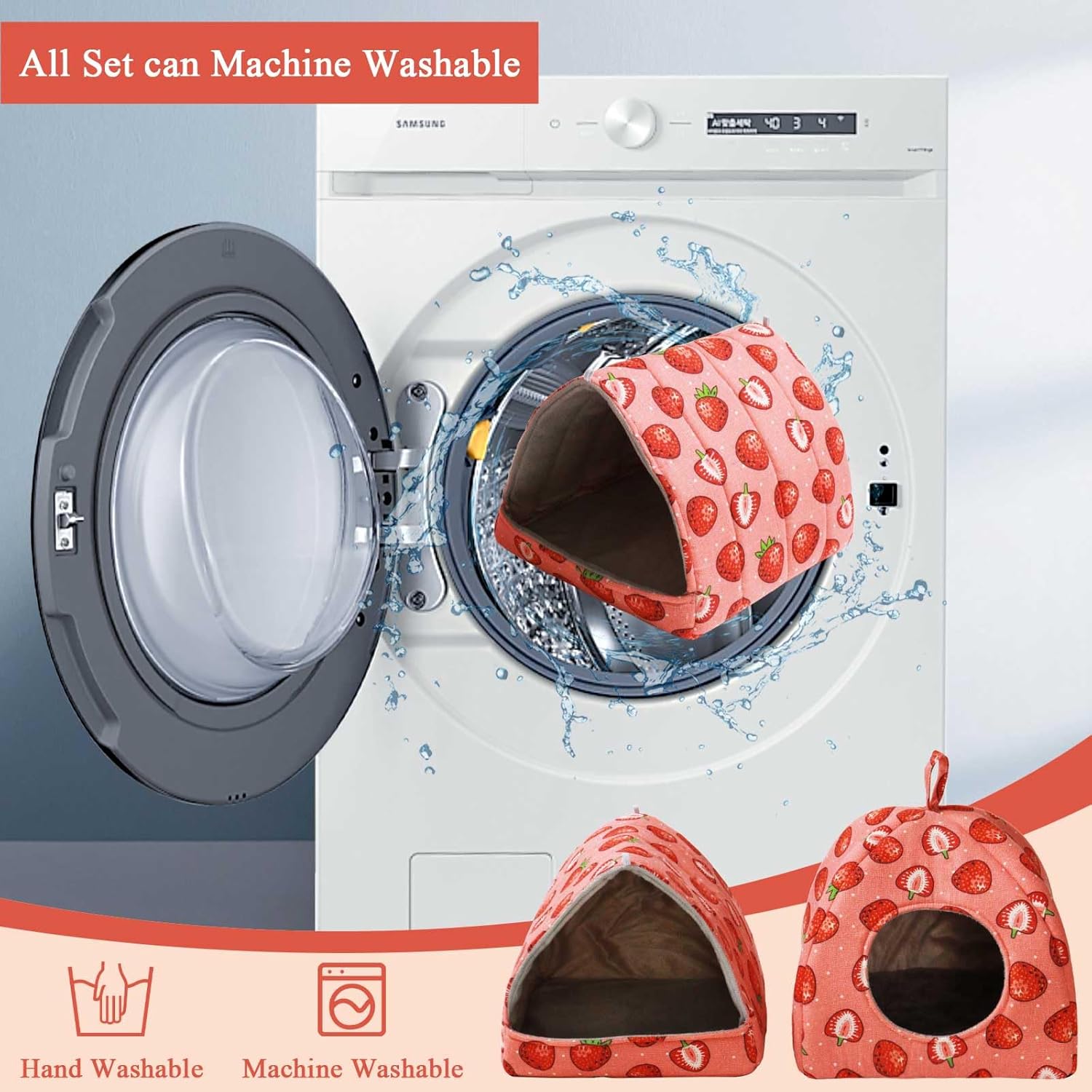 • Stress-Free Cleaning & Longevity--Designed for busy pet owners, both hideouts are quick-drying and machine-washable, maintaining their vivid colors and stretchy texture over time. The set’s variety keeps pets entertained while simplifying cage maintenance—a win-win for hygiene and habitat enrichment