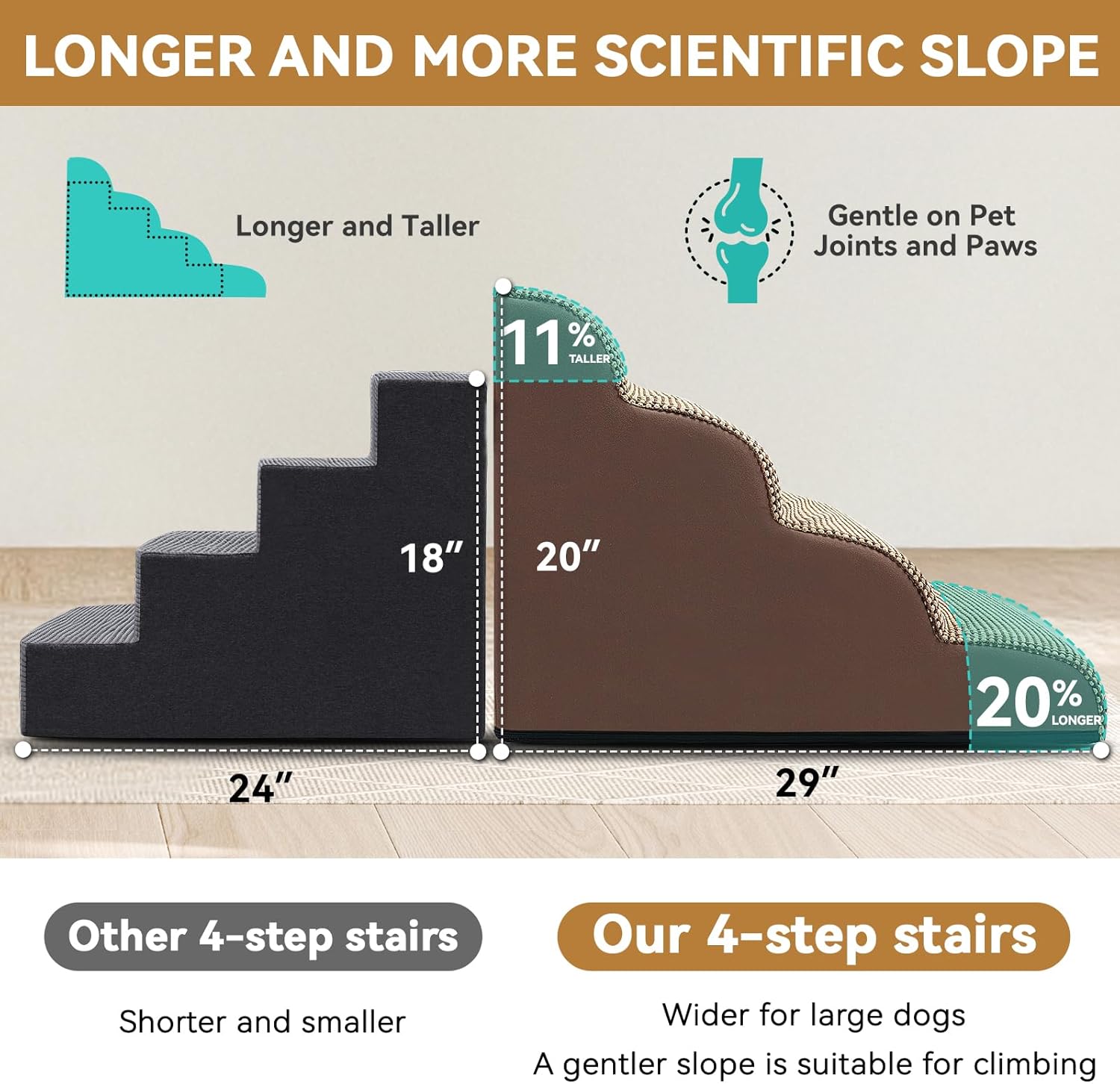 Dog Ramp and Stair for Bed 16" H-20 H,3-Step Cat Stair for Sofa and Chair,4-Step Dog Ramp for High Bed and Window,Durable Nonslip Fabric Cover for Indoor (Coffee-20 H, Pet Friendly, 4)
