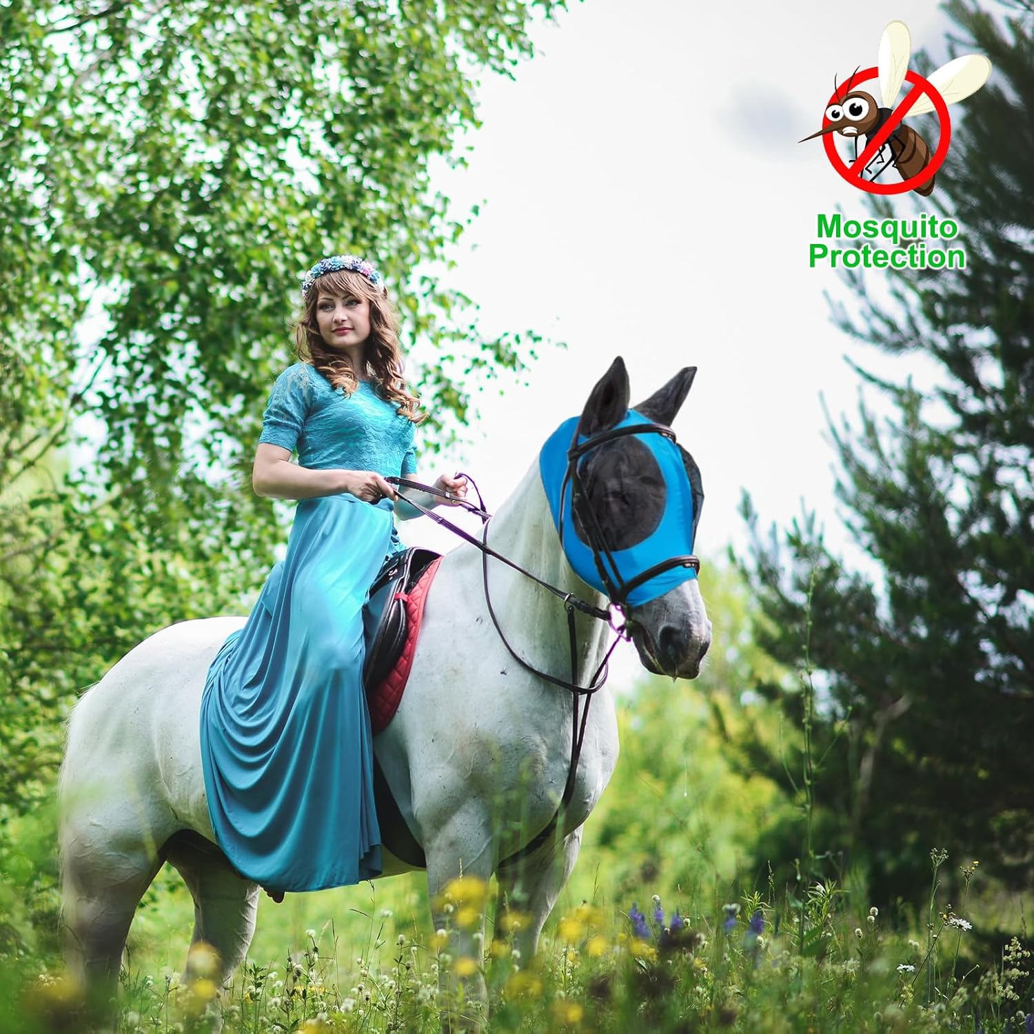 Horse Fly Mask with Ears, Comfortable Fit Stretch Fabric with UV Protection Soft on Skin Breathability for Small/Medium Size Horses (Blue)