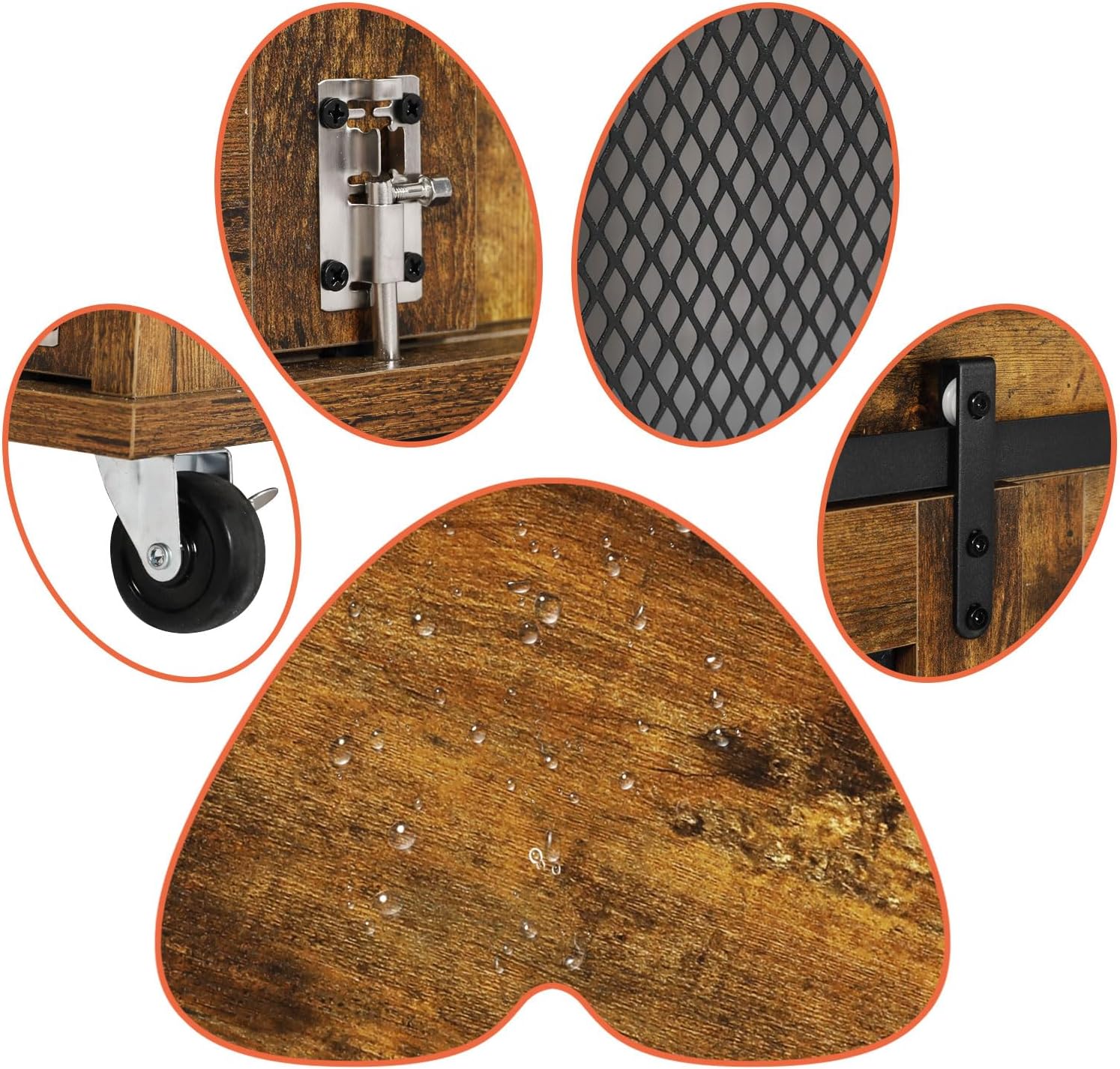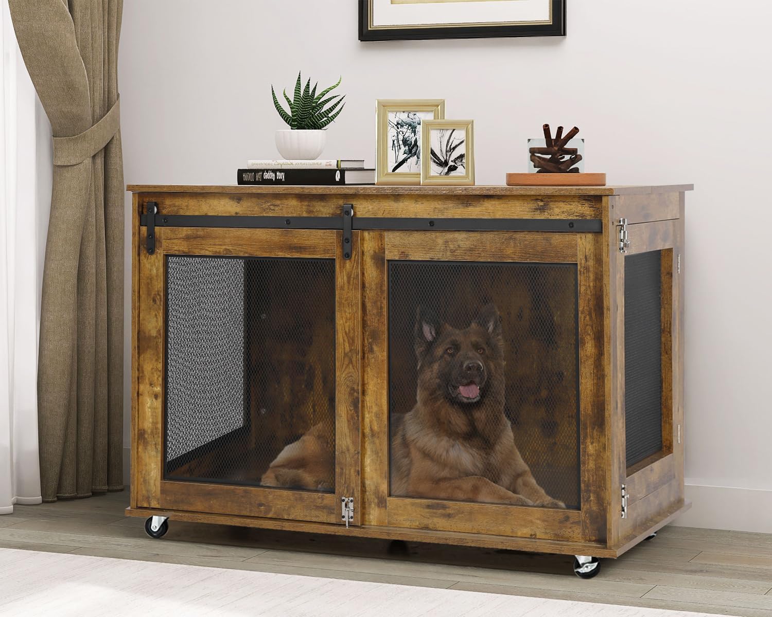 • 【Modern Dog Kennel】Modern Grey Dog crate furniture with sliding barn doors, suitable for any home decoration style. 5 wheels at the bottom, 2 can be fixed and can be moved anywhere you want