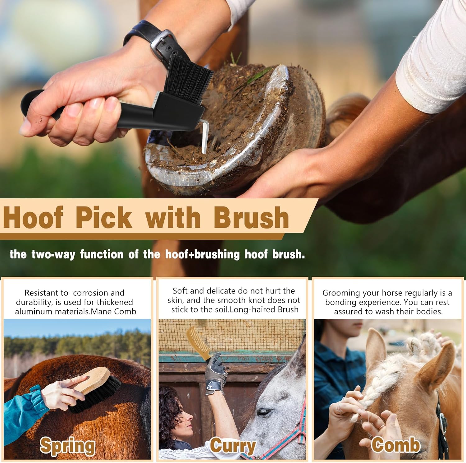 • Practical Gift: these horse grooming tools are suitable for horse groomers, equestrian enthusiasts, beginner riders, stable owners; This horse brush set is a great addition to rider's tack room, or as a gift for that loving horse in your home; You can give this horse grooming kit as a gift to your friends especially those are stable owners, and they will be happy to receive this thoughtful gift