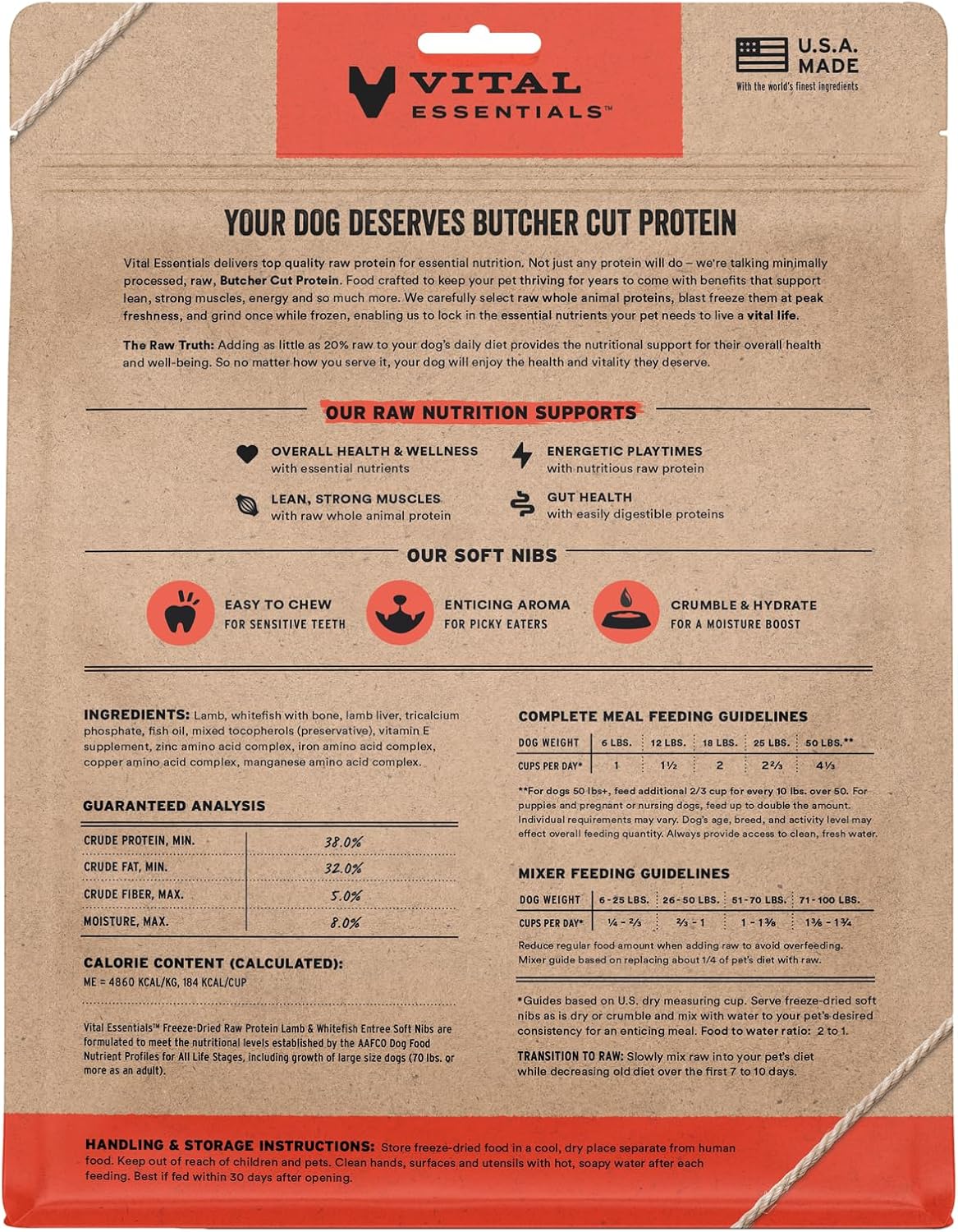 • SOFT NIBS FREEZE-DRIED RAW LAMB & WHITEFISH DOG FOOD: Vital Essentials Freeze Dried Soft Nibs Dog Food packs more protein than industry standard into every soft bite to deliver the peak vitality your dog deserves, especially when compared to dehydrated dog food. This complete and balanced freeze-dried raw dog food is made with responsibly sourced premium Butcher Cut lamb and whitefish.