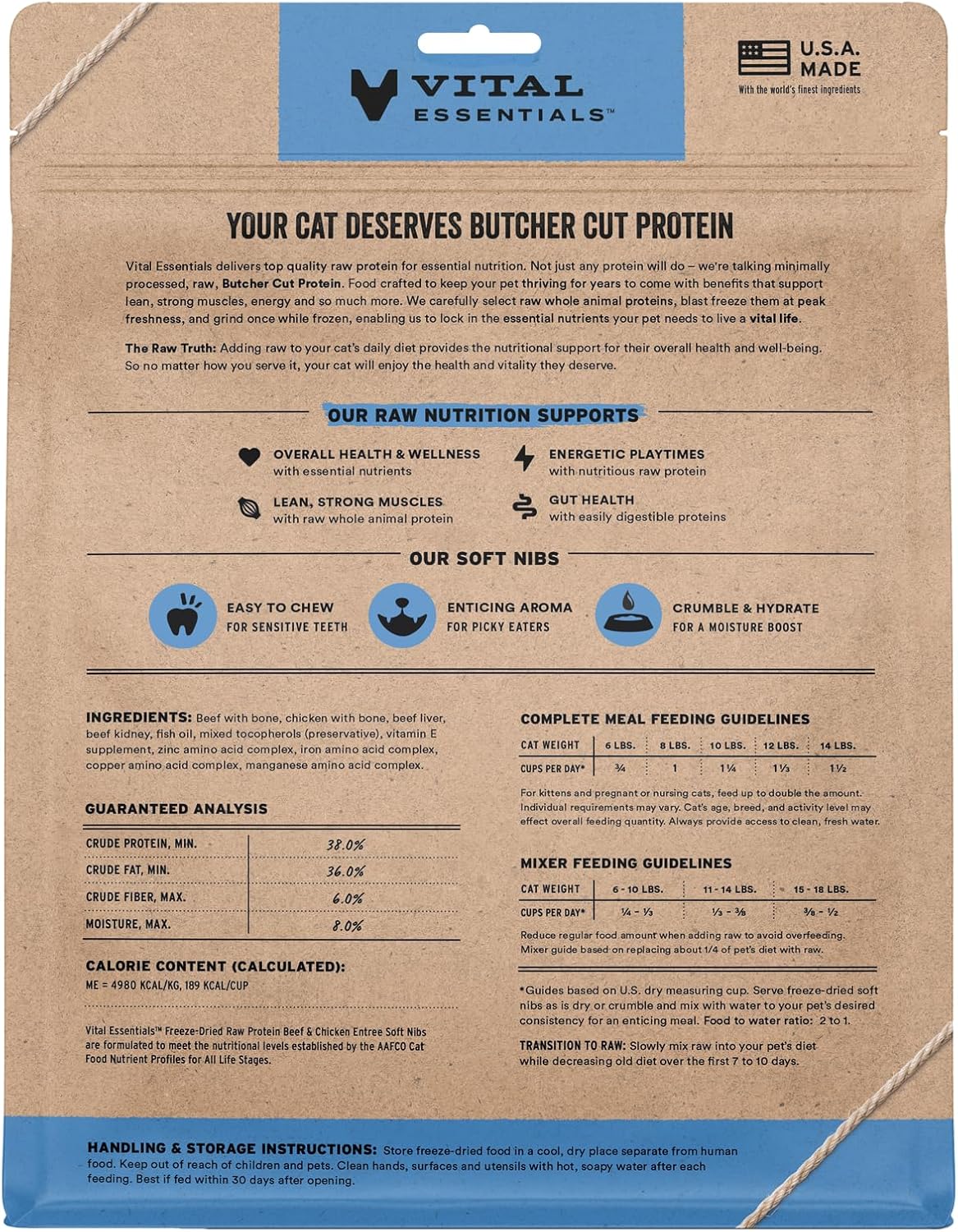 • SOFT NIBS FREEZE-DRIED RAW BEEF & CHICKEN CAT FOOD: Vital Essentials Freeze Dried Cat Food packs more protein than industry standard into every soft bite to deliver the peak vitality your cat deserves, especially when compared to dehydrated cat food. Our complete and balanced freeze-dried raw cat food is made with Butcher Cut premium beef and chicken, responsibly sourced in the USA.