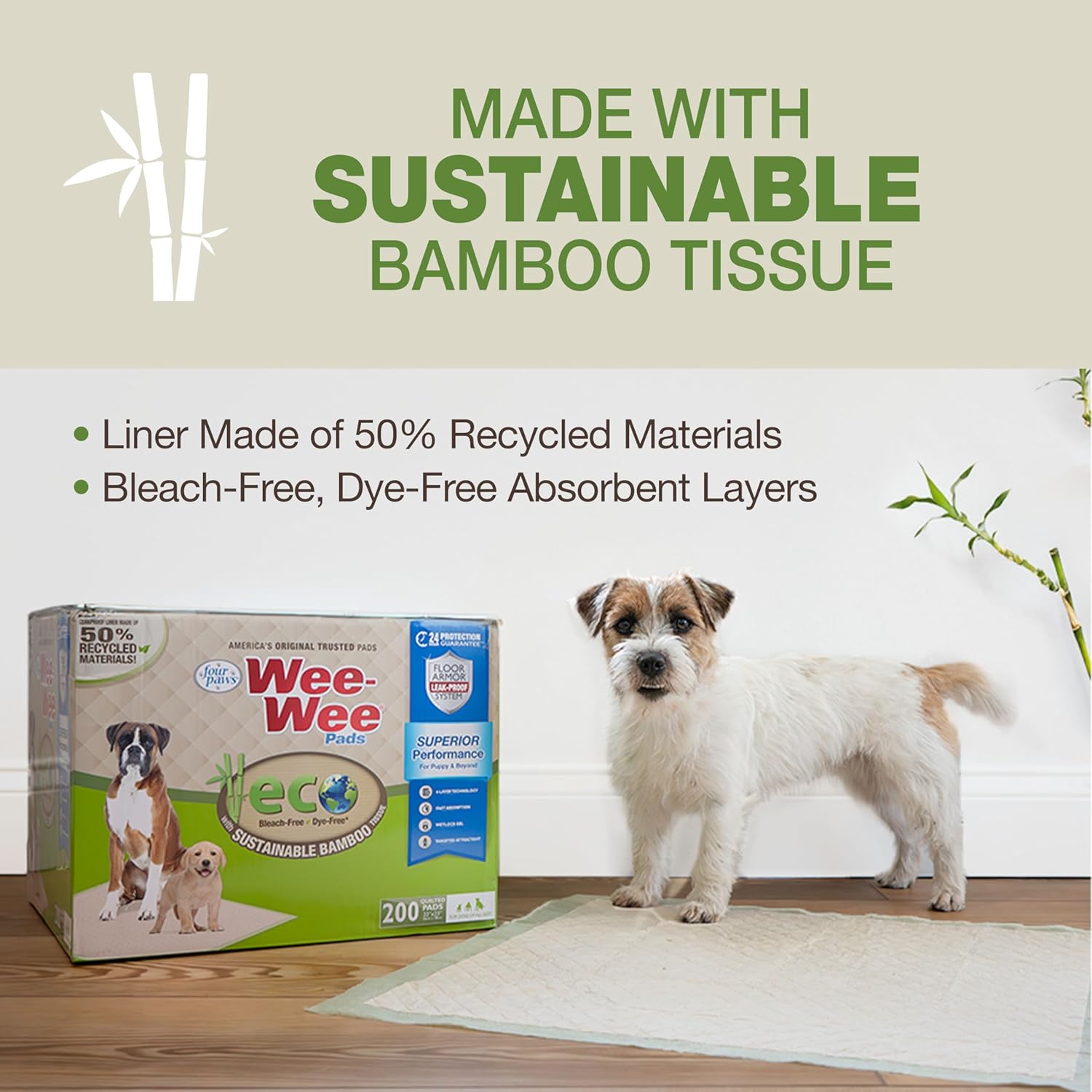 Four Paws Wee-Wee Superior Performance Bamboo Pee Pads for Dogs, Earth Friendly Dog & Puppy Potty Training Pads, Crate Liners, Housebreaking Supplies, 22" x 23" (100 Count)