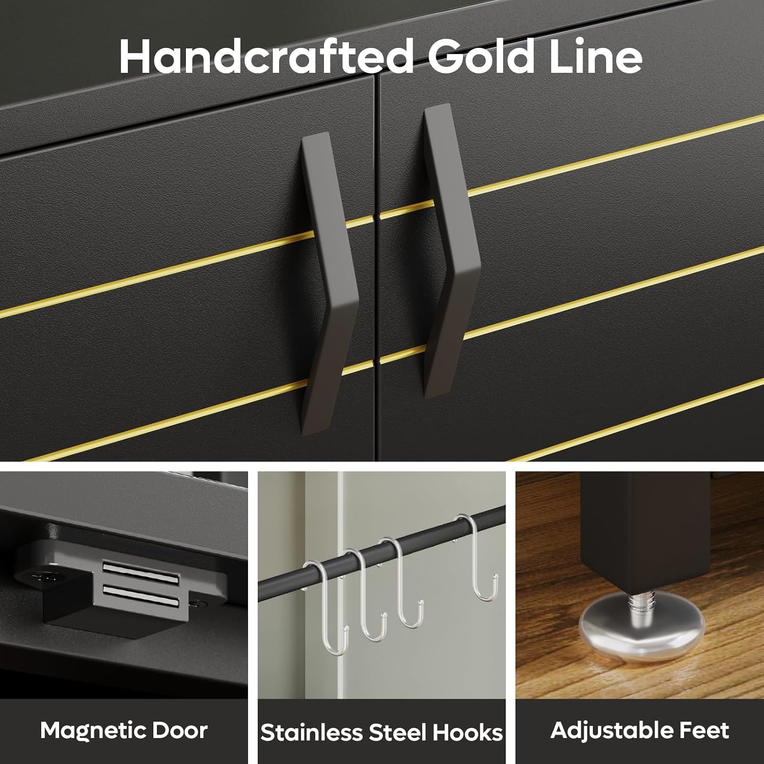 • Aquarist-Friendly Design: Designed for dedicated aquarists, the 20-gallon fish tank stand features Magnetic Cabinet Doors for easy access, four hooks for hanging nets or tools, and adjustable feet for improved stability