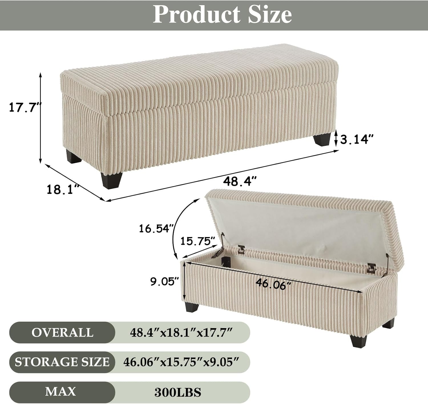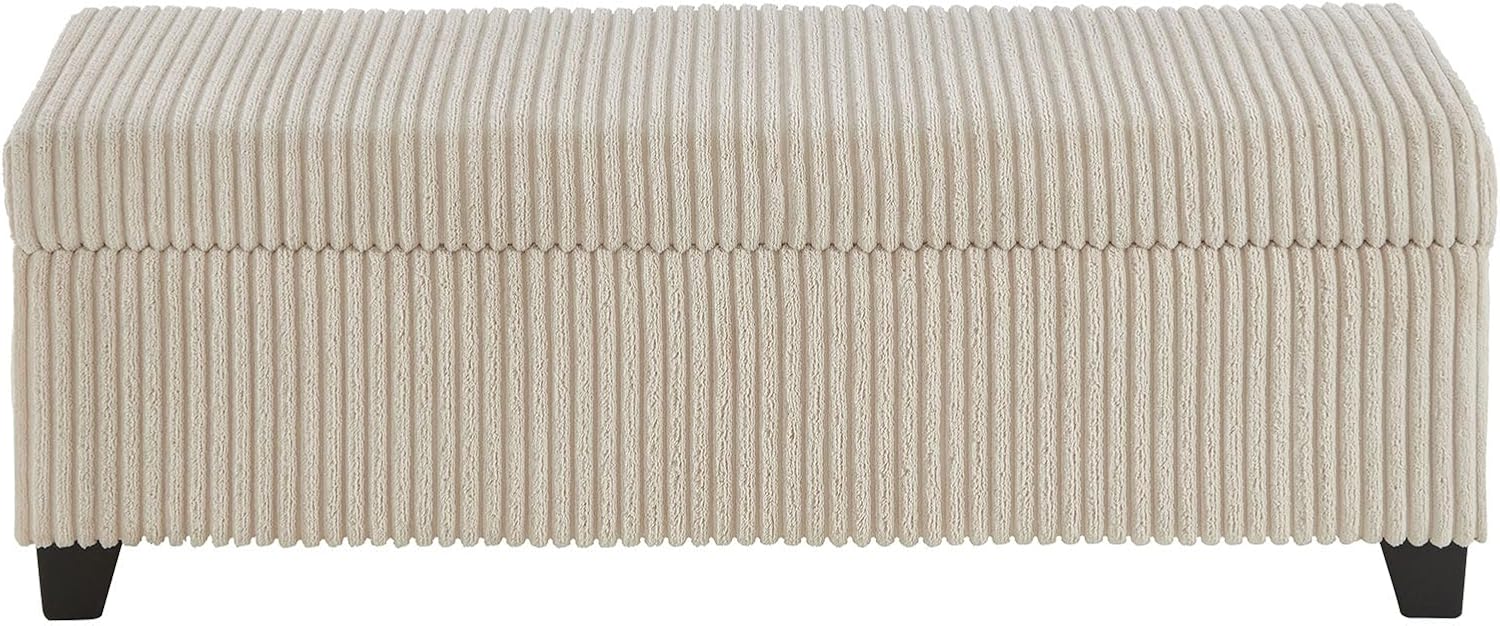 48" Ottoman with Storage, Corduroy Storage Ottoman Bench for Bedroom, End of Bed Bench with Safety Hinge for Living Room, Bedroom, Entryway, Beige