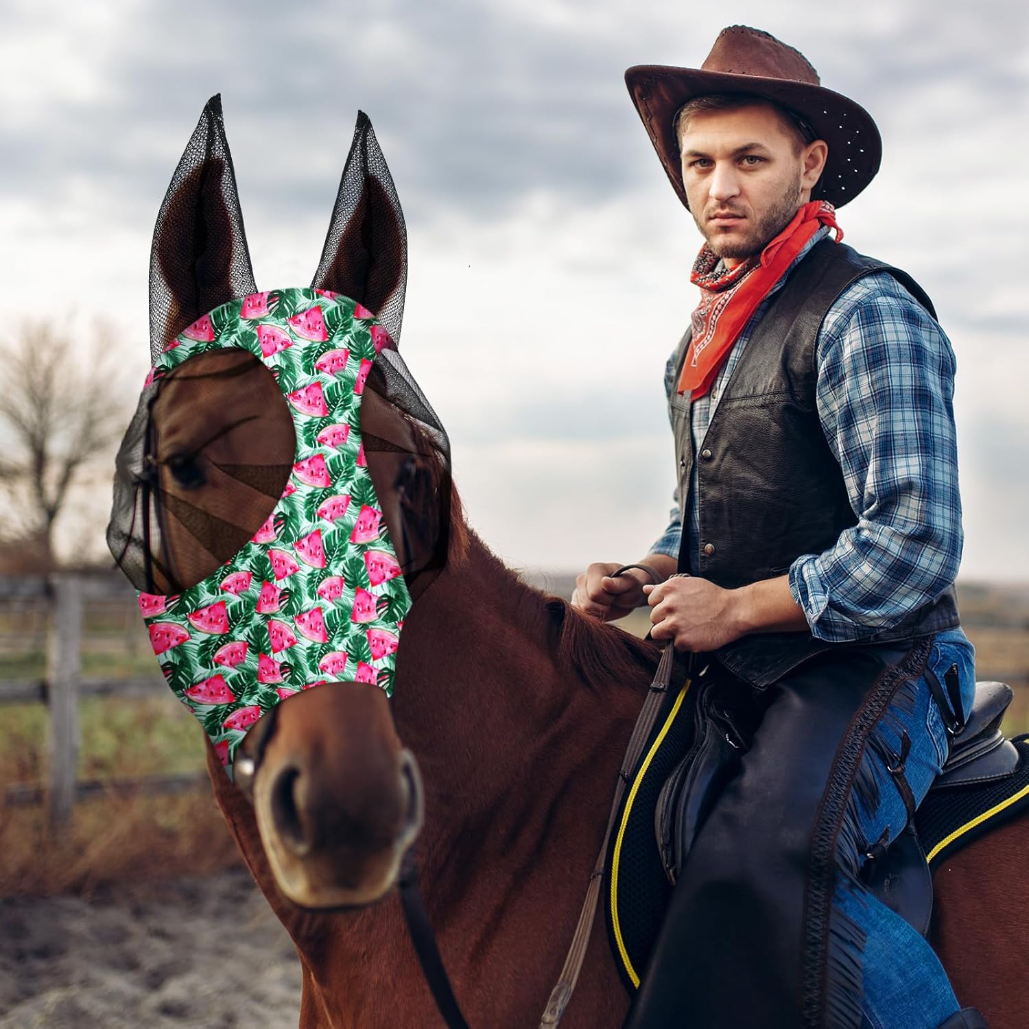 • Comfort Fit: lightweight and breathable horse mask is suitable for long-term wear, which can keep flies away, and it also keeps horse have clear vision and physical hearing; Soft mesh provides protection for the eyes and ears while providing full visibility, and this horse mask won't be too tight, horse can open their eyes