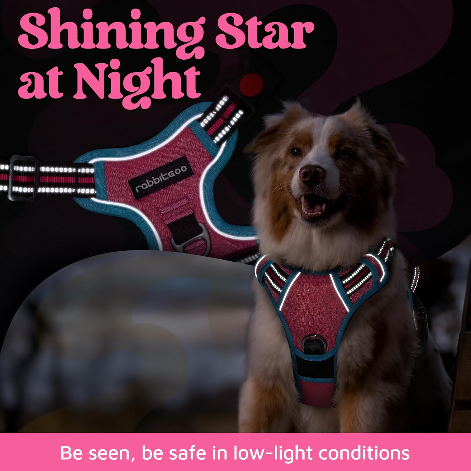 rabbitgoo Dog Harness Medium Sized, No Pull Dog Vest with 3 Buckles, Adjustable Soft Padded Pet Harness with Easy Control Handle and Reflective Strips, Rose Pink & Blue, M