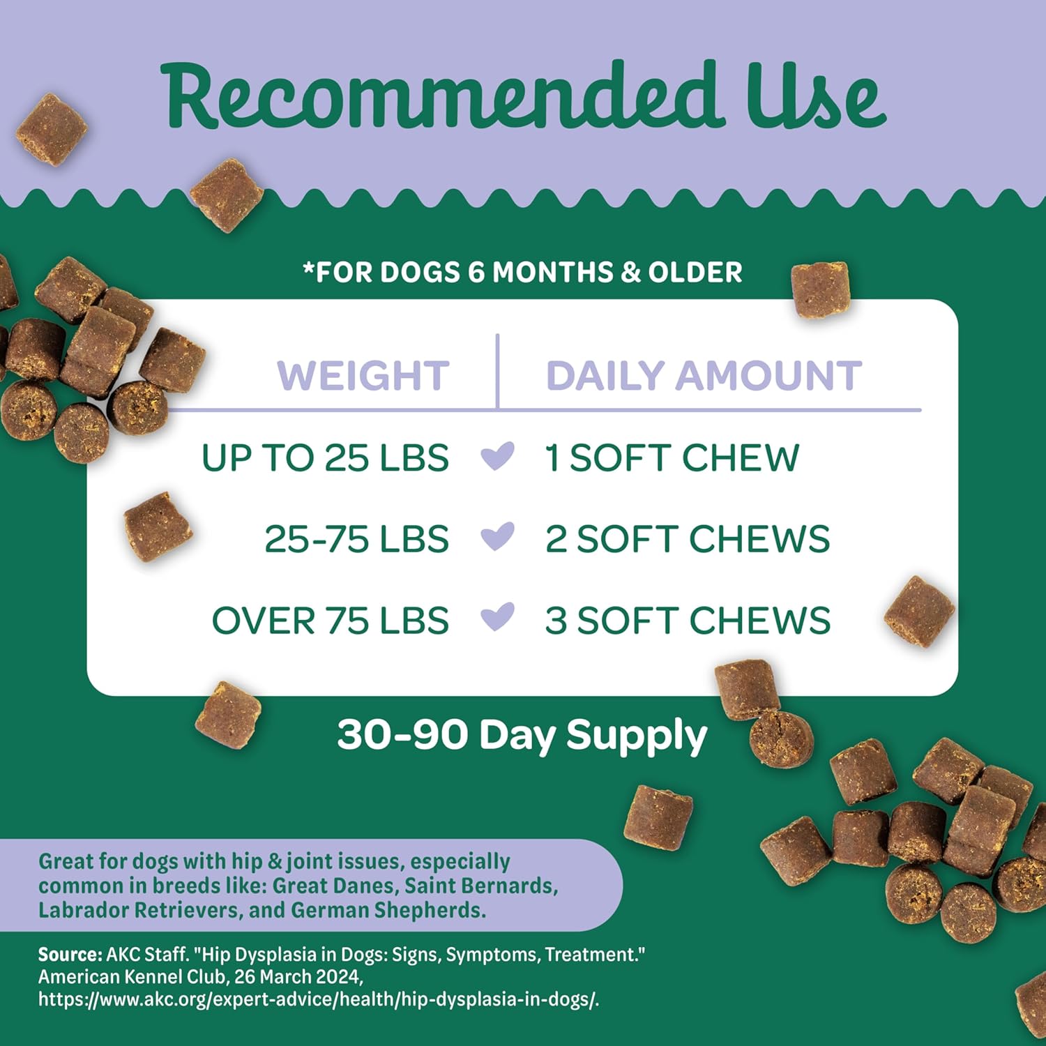 • MAY RELIEVE AND EASE JOINT PAIN – Helps reduce inflammation and ease discomfort from arthritis, hip dysplasia, and age-related joint issues – while also serving as a daily preventative for active dogs.