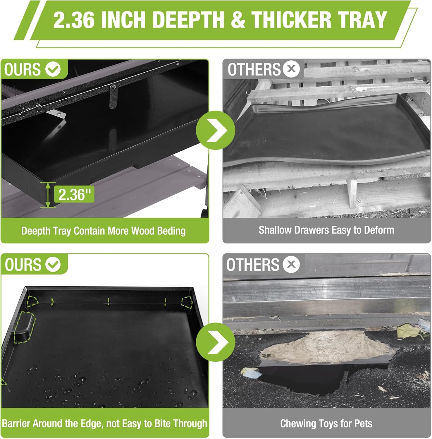 • 2.36" Deep Tray: The deepened plastic tray gives you ample space for bedding, with special baffles in the corners to prevent pets from chewing