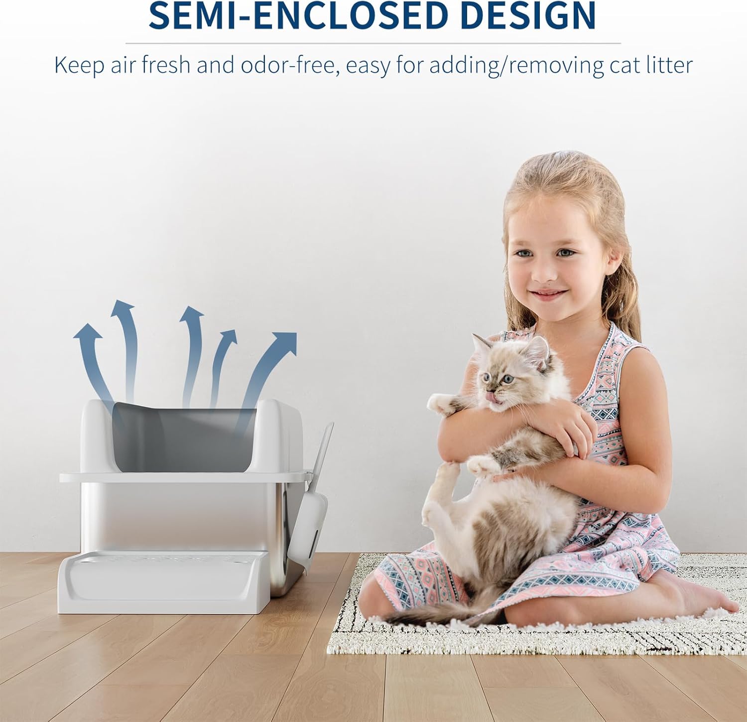 • Odor-Free and Easy to Clean: The smooth, non-stick stainless steel surface makes cleaning a breeze, as waste easily slides off without leaving odors behind. Unlike plastic, this sturdy material resists rust and scratches, ensuring a hygienic environment for your cat.