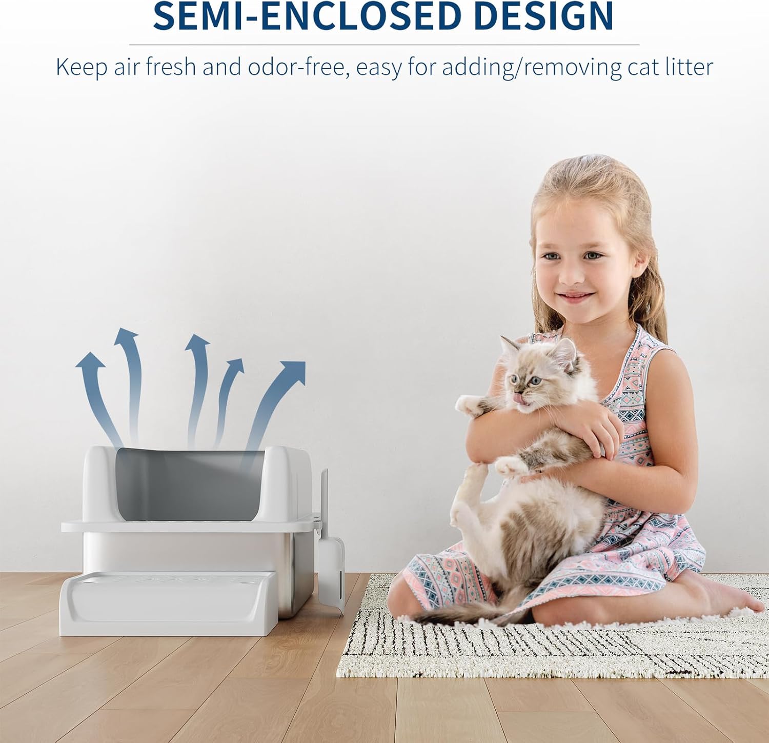 • Simplified Maintenance: Includes a litter scoop for easy cleaning. The XL size holds up to 37 liters of litter, providing enough capacity for up to 30 days of use for one adult cat—perfect for busy schedules or travel, so you can worry less about frequent litter changes.