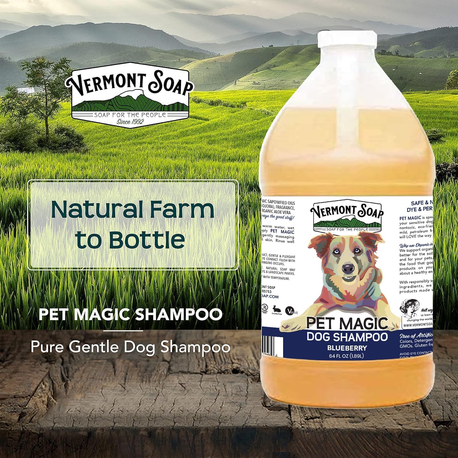 VERMONT SOAP Organics Pet Shampoo - Infused with Organic & Natural Olive Oil, Coconut & Aloe Vera Dog Shampoo for Sensitive Skin - USDA Certified Grooming, Blueberry (64oz)