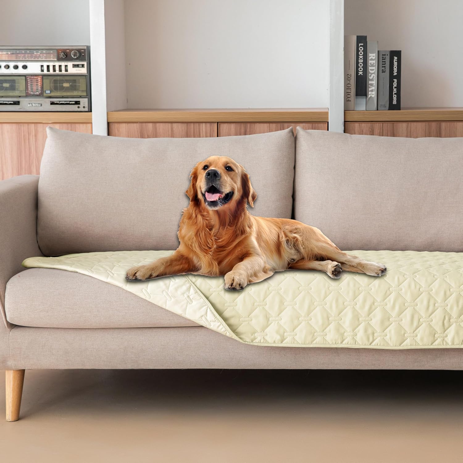 gogobunny 100% Double-Sided Waterproof Dog Bed Cover Pet Blanket Sofa Couch Furniture Protector for Puppy Large Dog Cat, Reversible (30x70 Inch (Pack of 1), Dark Cream/Light Cream)