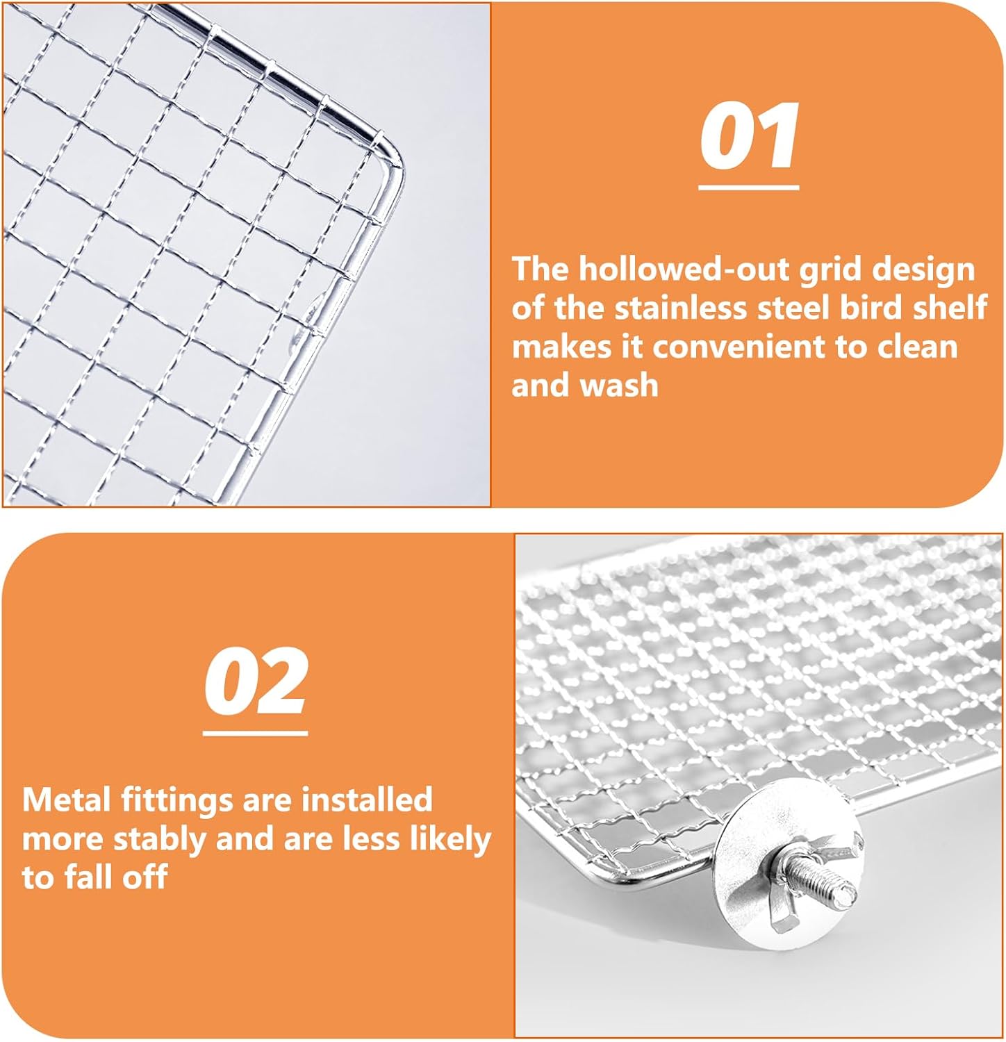 • Stainless Steel Material: BNOSDM bird perch platform stand is made of stainless steel, which is of good quality, stable and durable, and not easy to deform. Bird perch shelf grid structure can keep the platform dry and promote air circulation