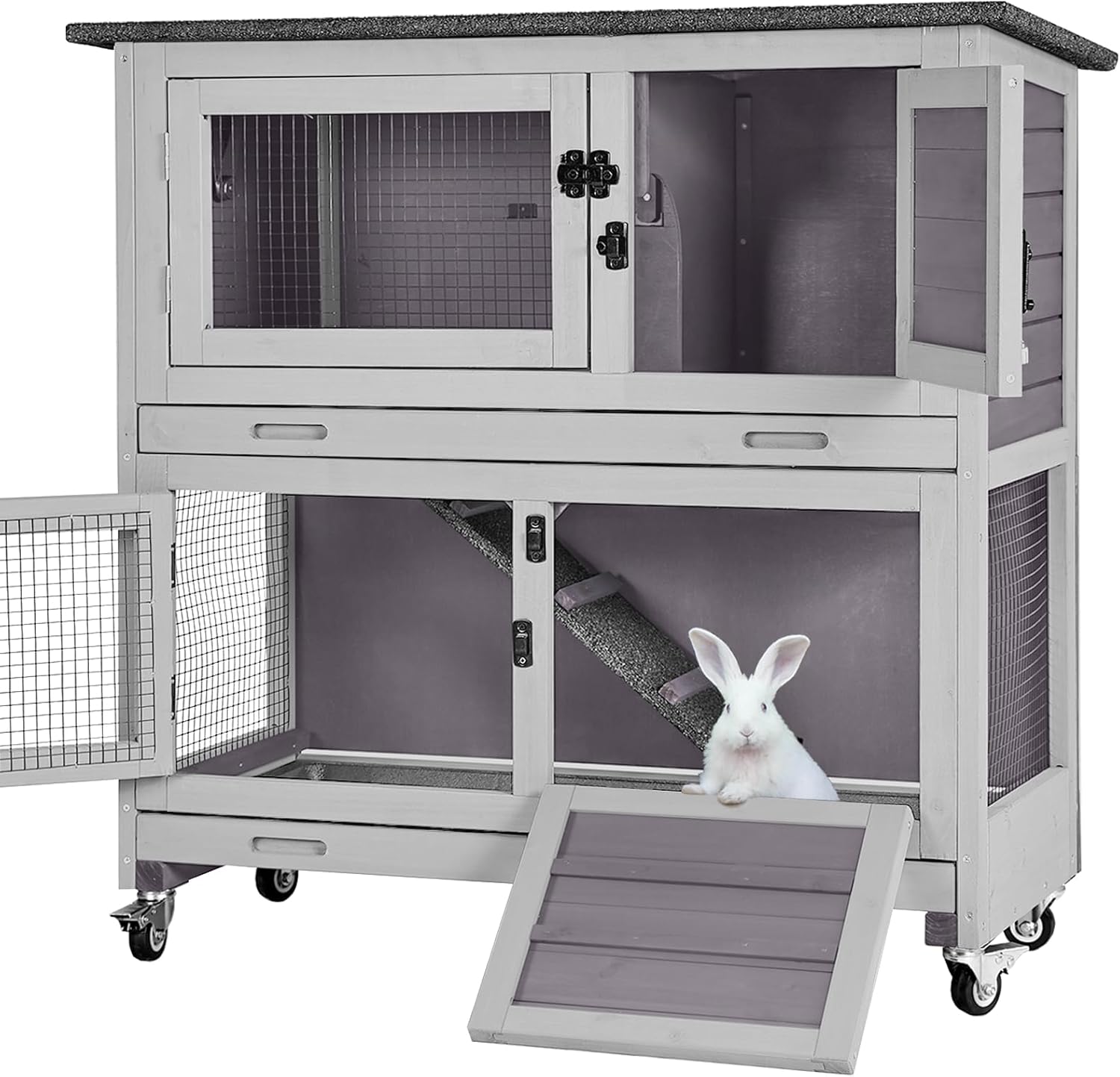 • Rabbit cage with TWO DEEPER pull out trays that won’t leak off and easy-to-clean.