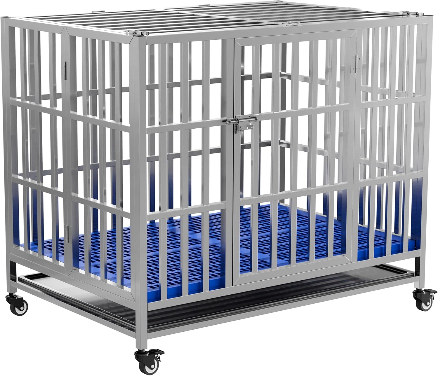 • 【Versatile】This stainless steel dog cage is available in 30", 37", 42", and 48" sizes, suitable for dogs of various breeds and sizes.