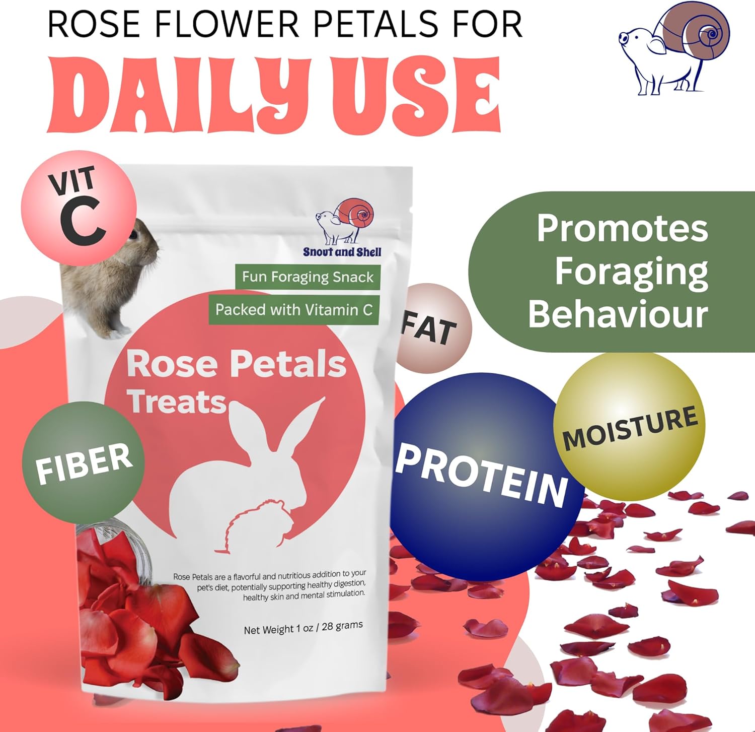 Snout and Shell Rose Petals Treats – Natural Snack for Rabbits, Guinea Pigs & Chinchillas – Vitamin C & Digestive Support, 1 oz