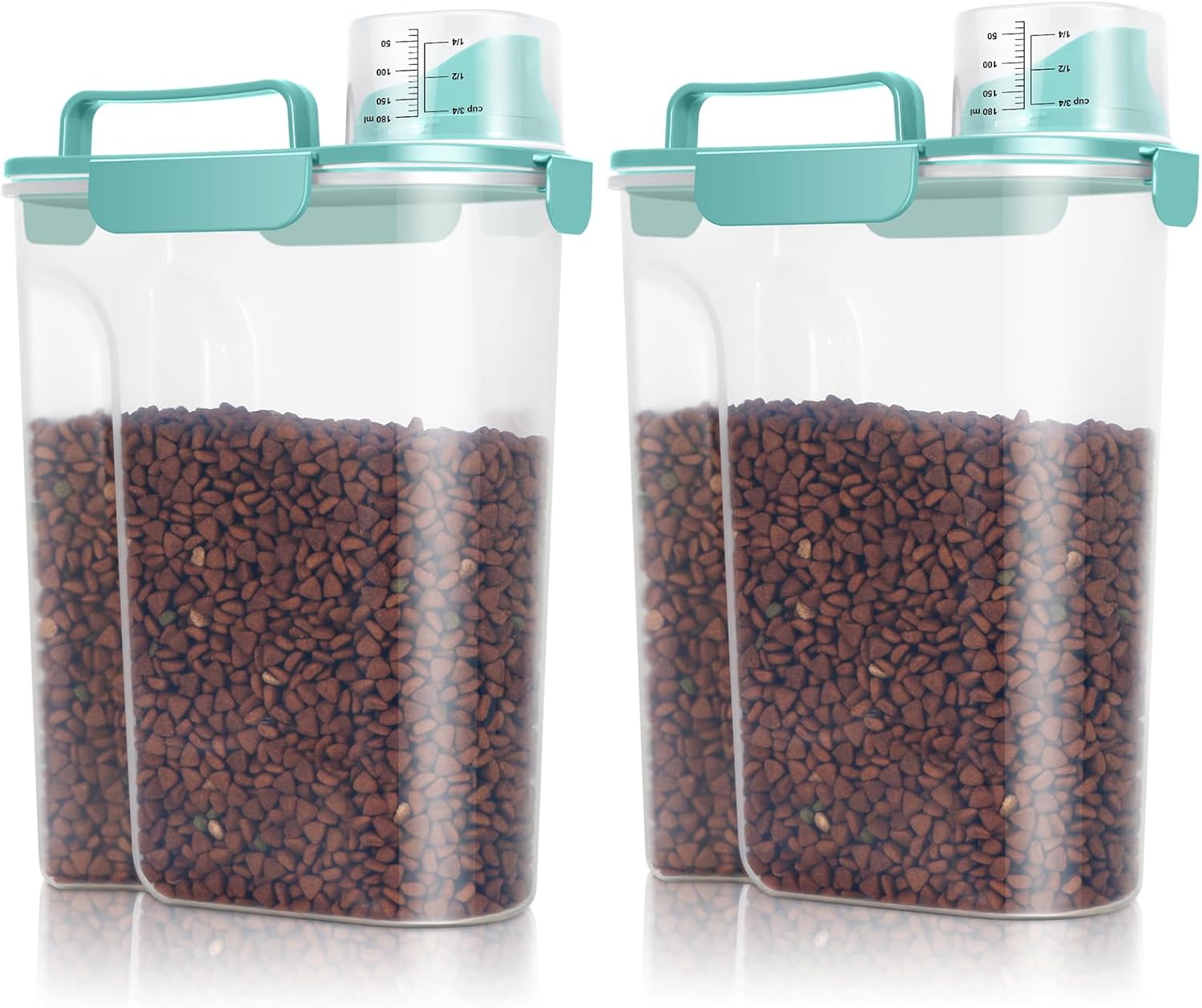 • Airtight Dog Food Container: With the snap-lock latches and silicone gaskets, the dog food dispenser can shut tightly to seal in freshness. You dog or cat won't open the container and make a mess any more