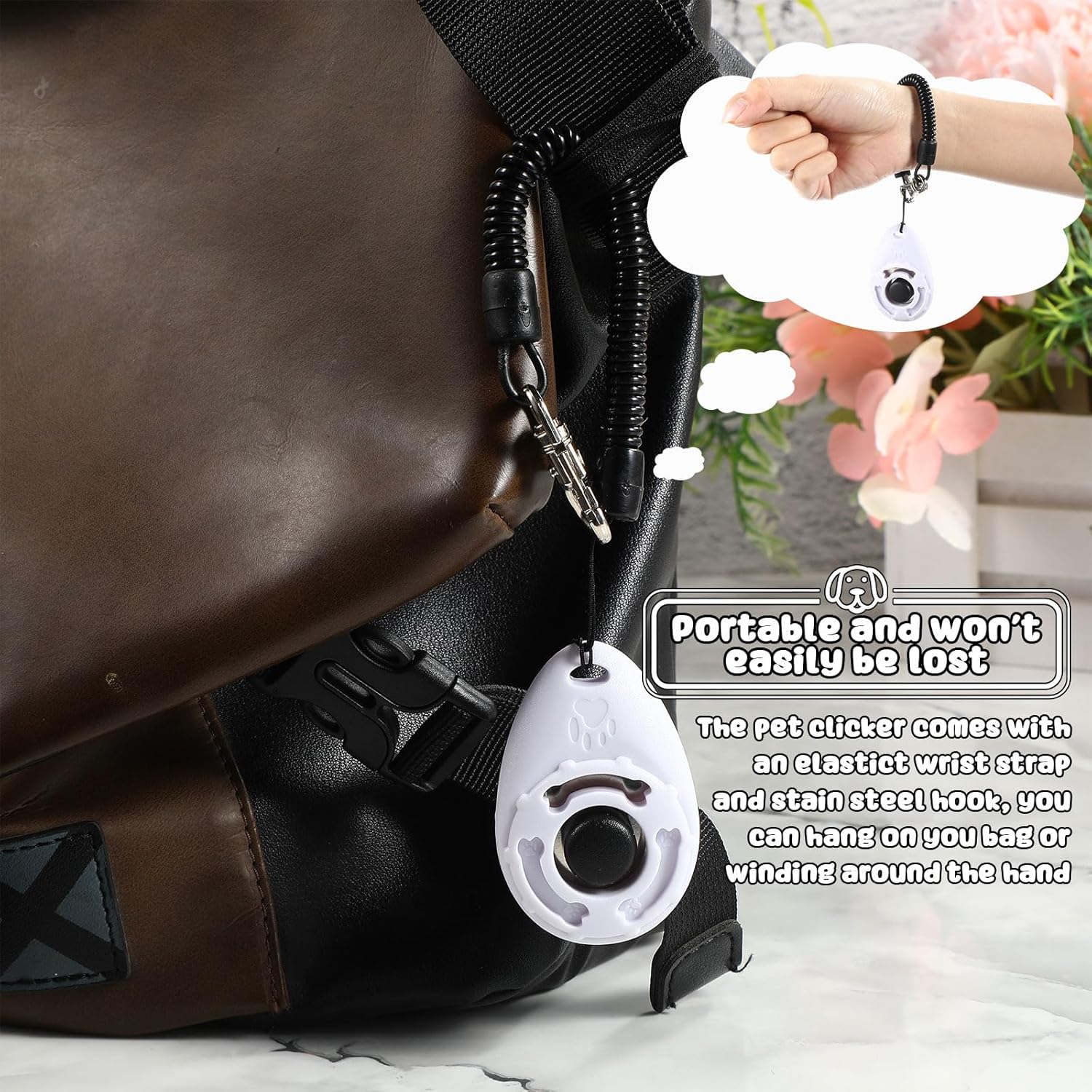 • Easy To Use: The Dog Training Clicker makes it comfortable and secure. It is attached to a keychain ring and elastic bracelet; Wear it on your wrist or hang it up or attach it to your handbag, so you don't drop it and can access easily and quickly; Wrist attachment makes it more comfortable and easier to hold onto, than box clickers when training your pet