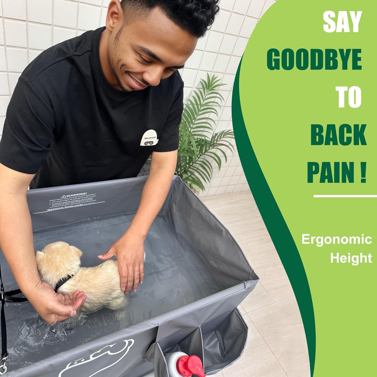 • 4. Foldable & Space-Saving Design: This collapsible frame easily folds for travel or compact storage, making it ideal for small spaces. Whether for indoor or outdoor use, it's a perfect puppy wash tub for home shower.