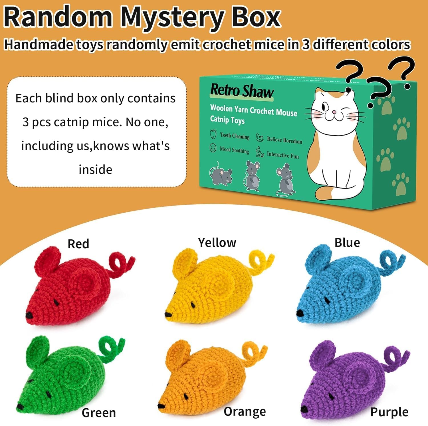 Retro Shaw Catnip Toys Crochet Mice Cat Toys,3 Pcs Yarn Cat Nip Mouse Animals Toy,Safe Teeth Cleaning Toy for Indoor Kittens