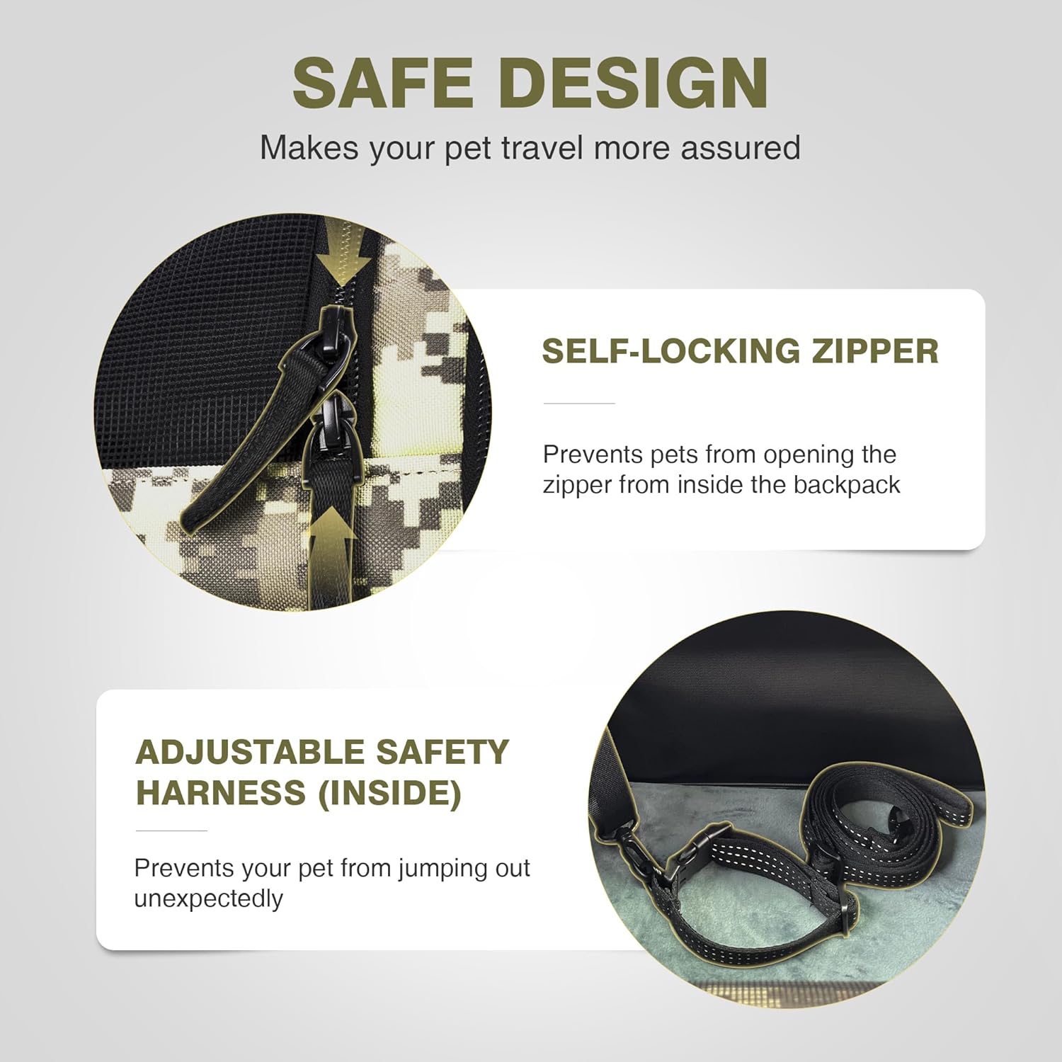 Collapsible Cat Backpack Carrier, Dog Backpack Carrier for Small Dogs Cats Up to 12 Lbs, Three-Sided Breathable Pet Backpack with Soft Padded, Designed for Outdoor and Travel Use, Camo