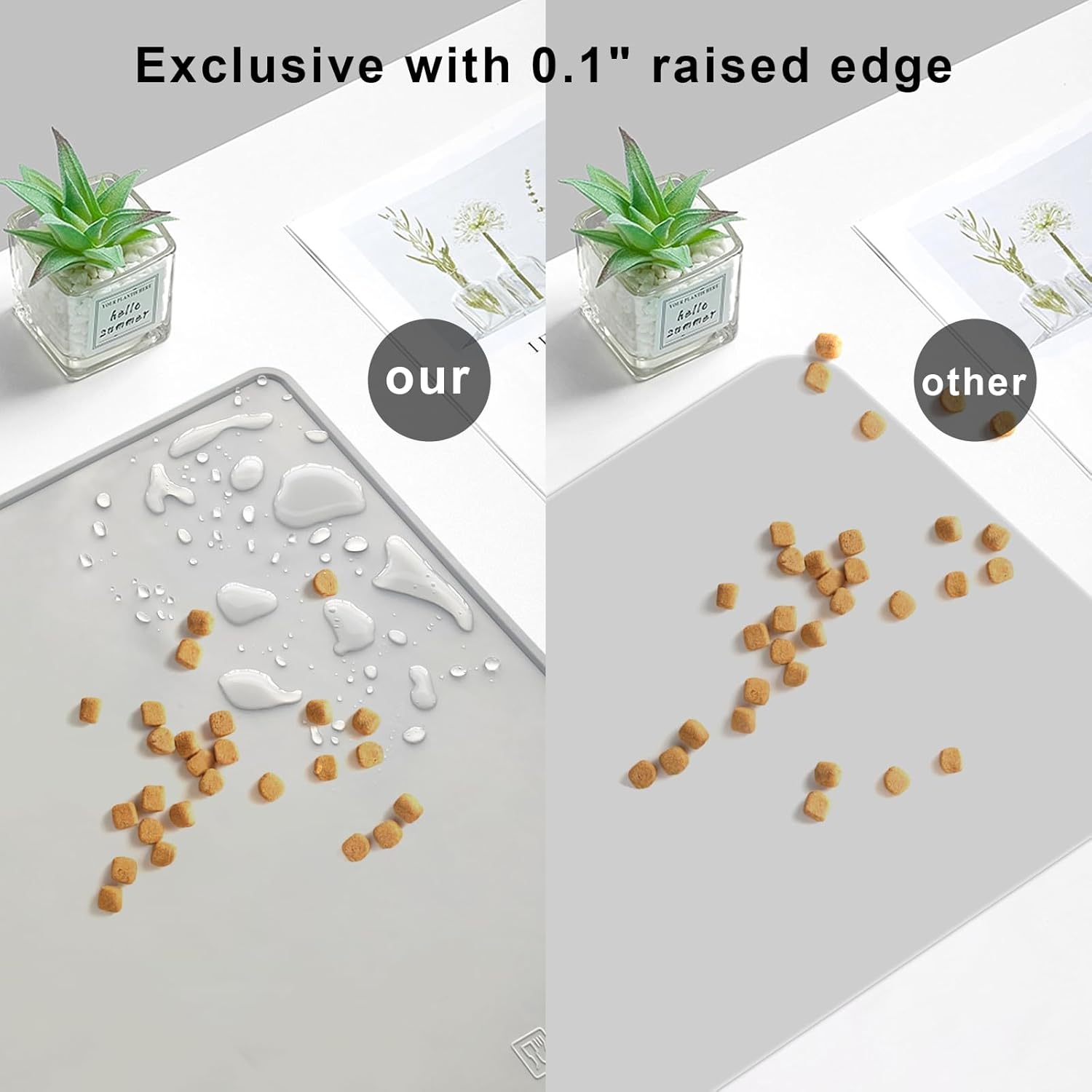 KVK Dog Water Mat 2-Pack 20×16in - Silicone Dog Mats for Food and Water, Non-Slip Pet Feeding Mat for Floors, Waterproof Cat Bowl Mats to Prevent Spills - Silver Gray & Cream