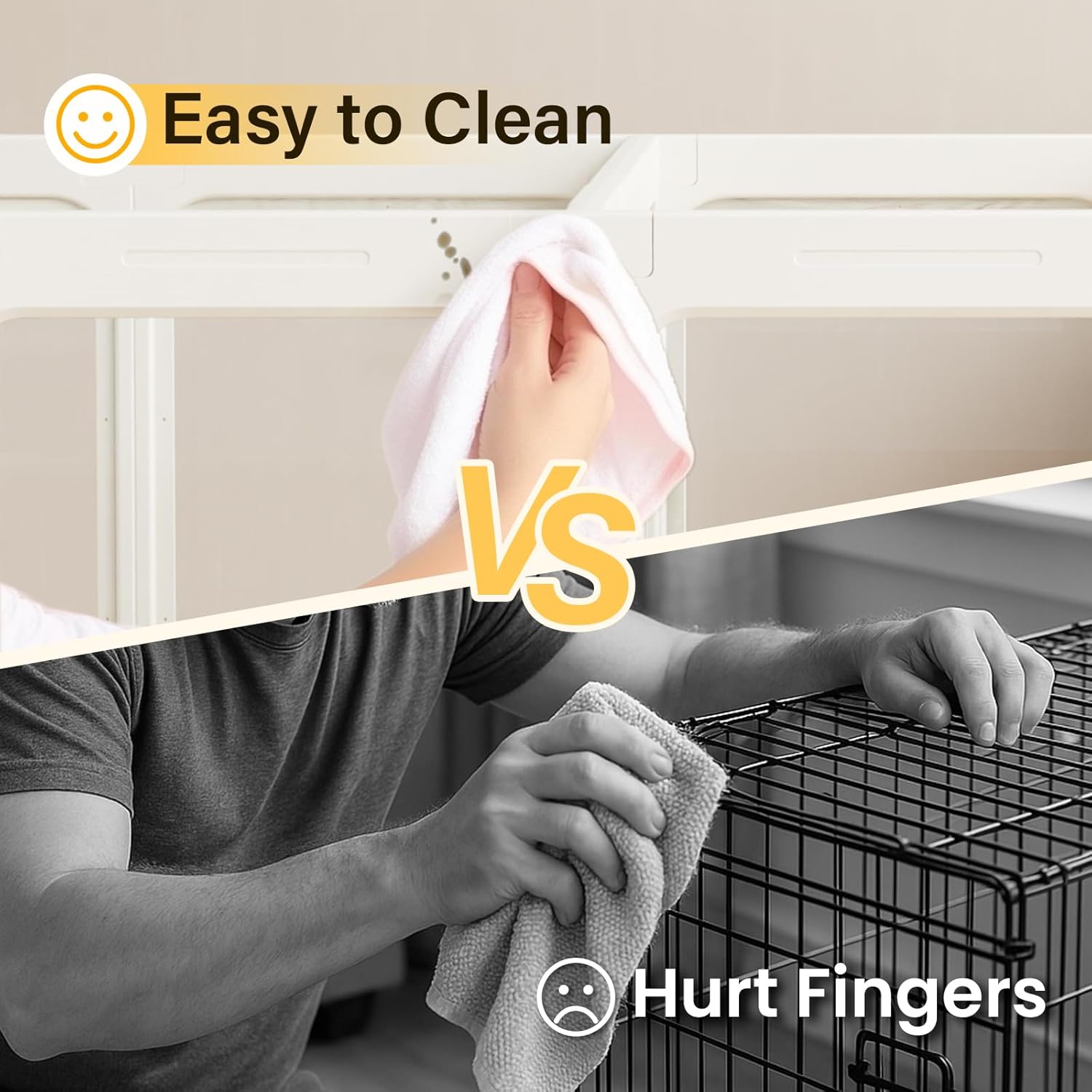• 【Easy Assembly】Our dog playpen indoors requires no tools and can be assembled in minutes. The interlocking joints ensure a secure and stable structure, making it easy to transport and clean. Perfect for both indoor and outdoor use.