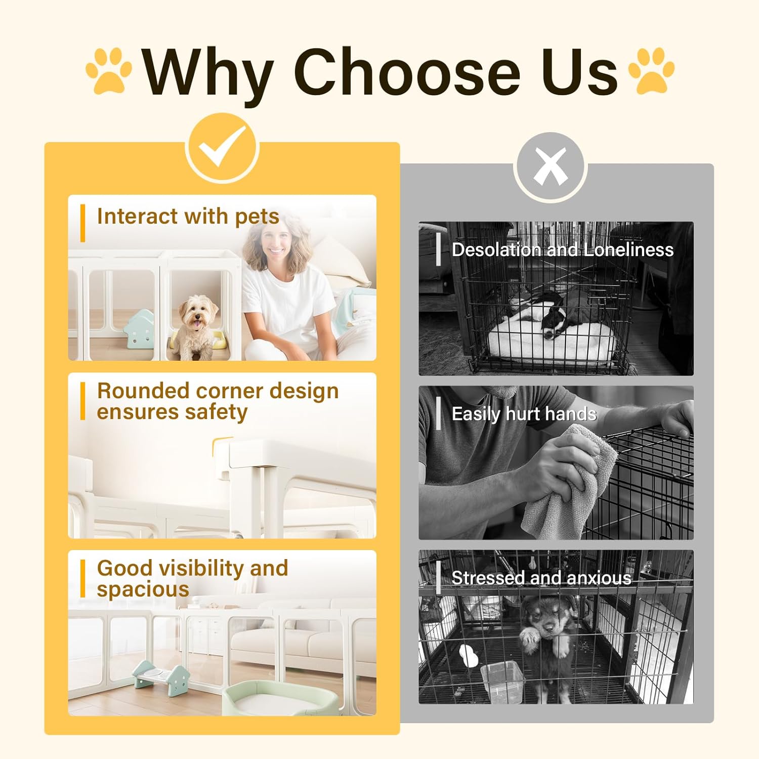 • 【Clear Dog Playpen】 Our clear dog playpen is designed with transparent acrylic panels that allow you to keep an eye on your furry friends while they enjoy their playtime. The clear design ensures maximum visibility and blends seamlessly into any home decor.