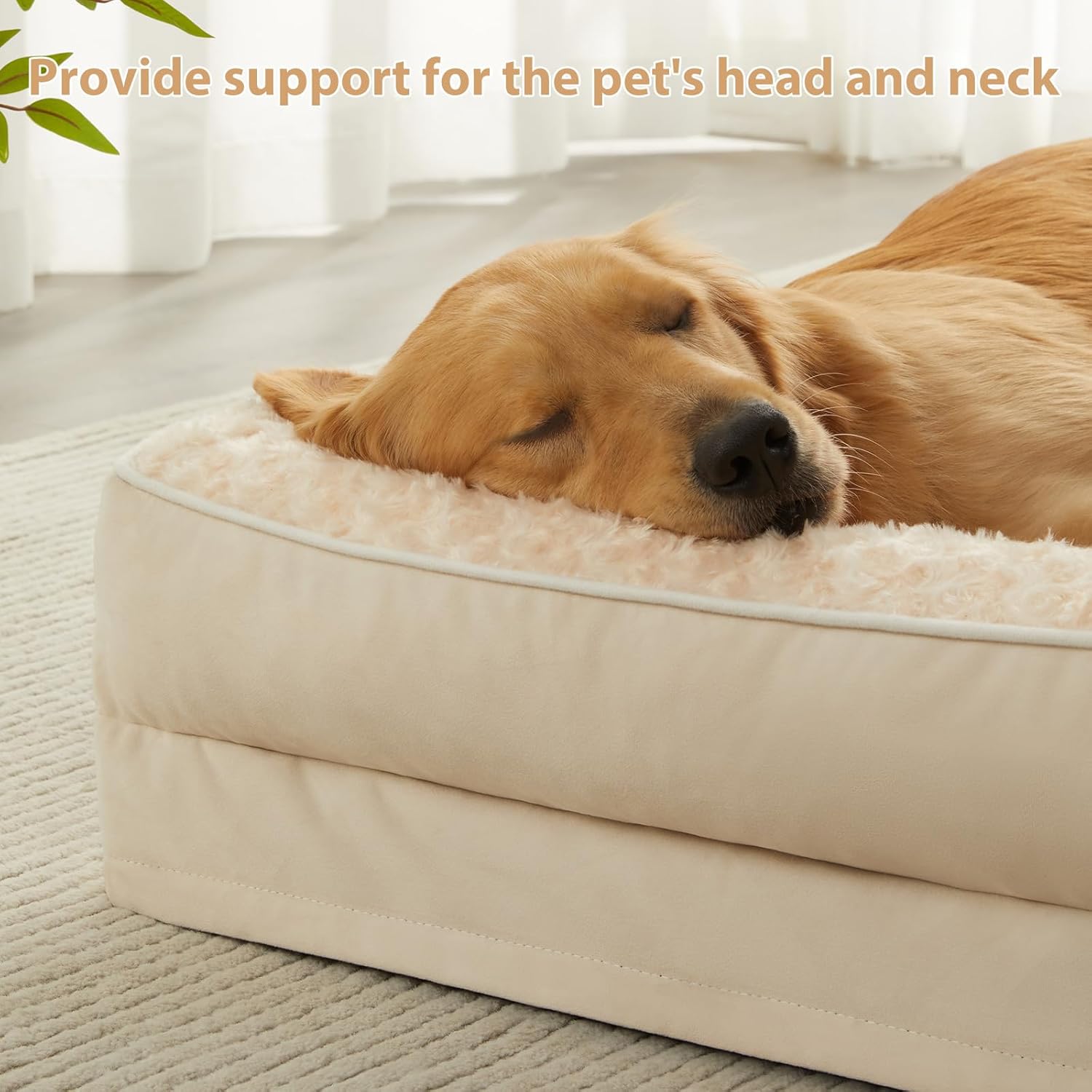 • L-SHAPED DOG BED: This X large dog bed adopts L shaped design, the dog beds Soft and comfortable rails provide extra support for our pet's head and neck, and the dog sofa bed has no railings on two sides, providing plenty of room for pets to stretch out. The dog beds for large dogs allow pets to be more soothed and relaxed and to fall into a deep sleep.