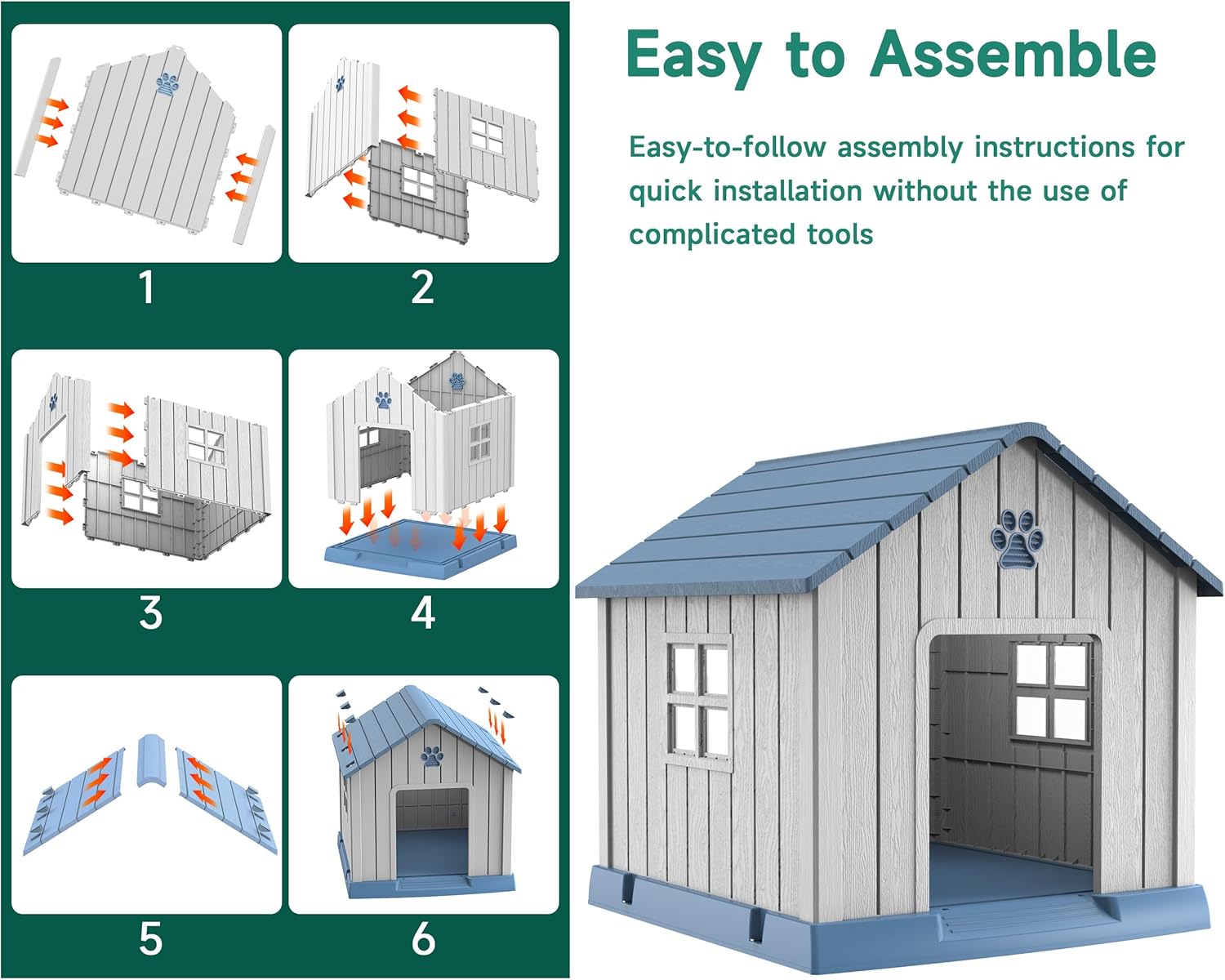 Vixzen 32in Large Outdoor Dog House,Durable Water Resistant Resin Dog House,Doghouse for Small to Large Dogs Indoor or Outside,with Air Vent and Elevated Floor,Blue