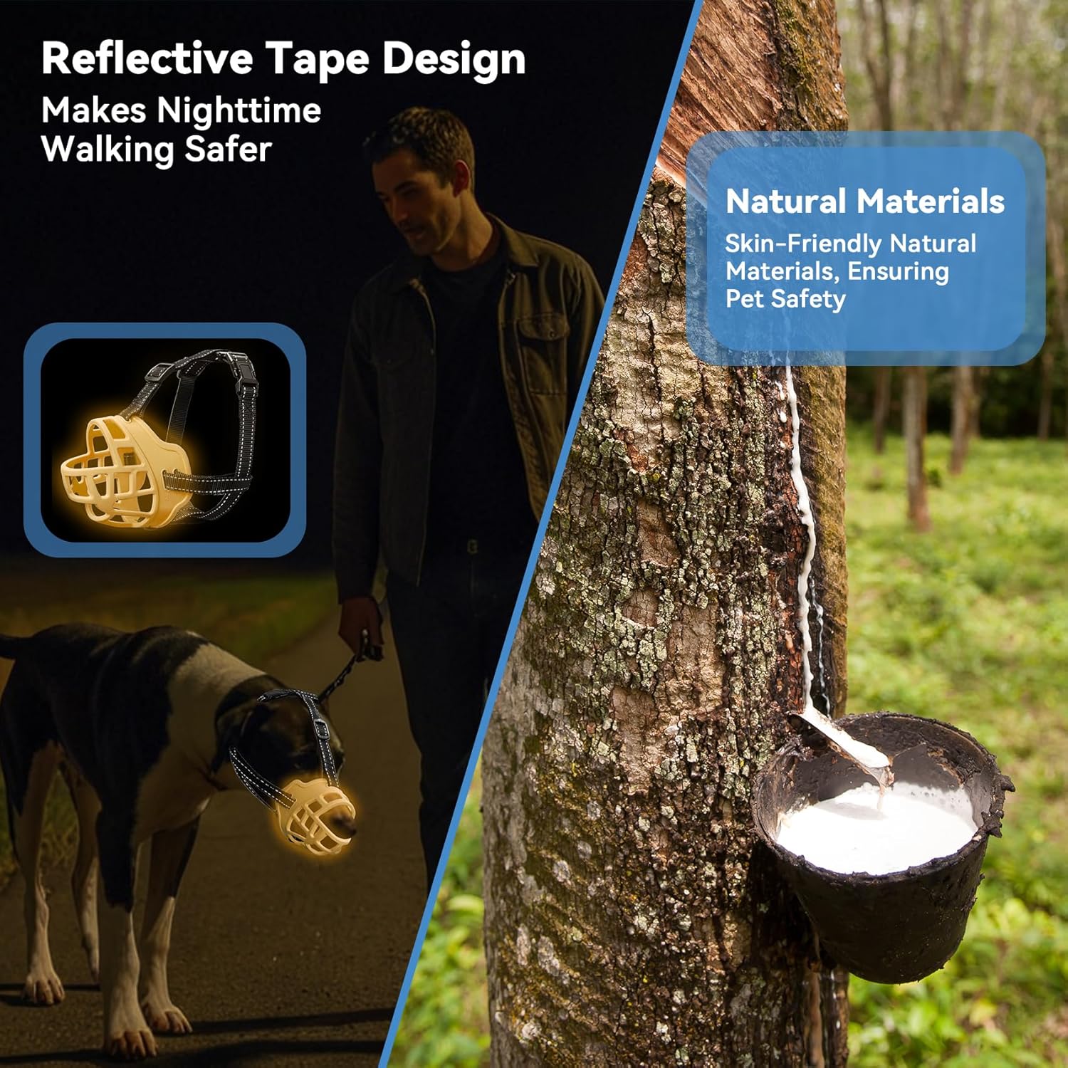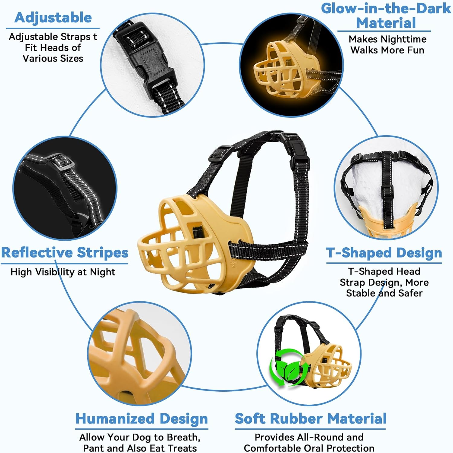 • Easy to Put on and Remove: Designed for Convenience, The Adjustable Straps on Our Dog Muzzle Allow for Quick and Secure Fitting. The Ergonomic Design Ensures a Hassle-Free Experience for Both You and Your Dog, Making it Ideal for Daily Walks, Training Sessions, Or Visits to the Vet. Reflective Strap Design Provides Night Travel Safety