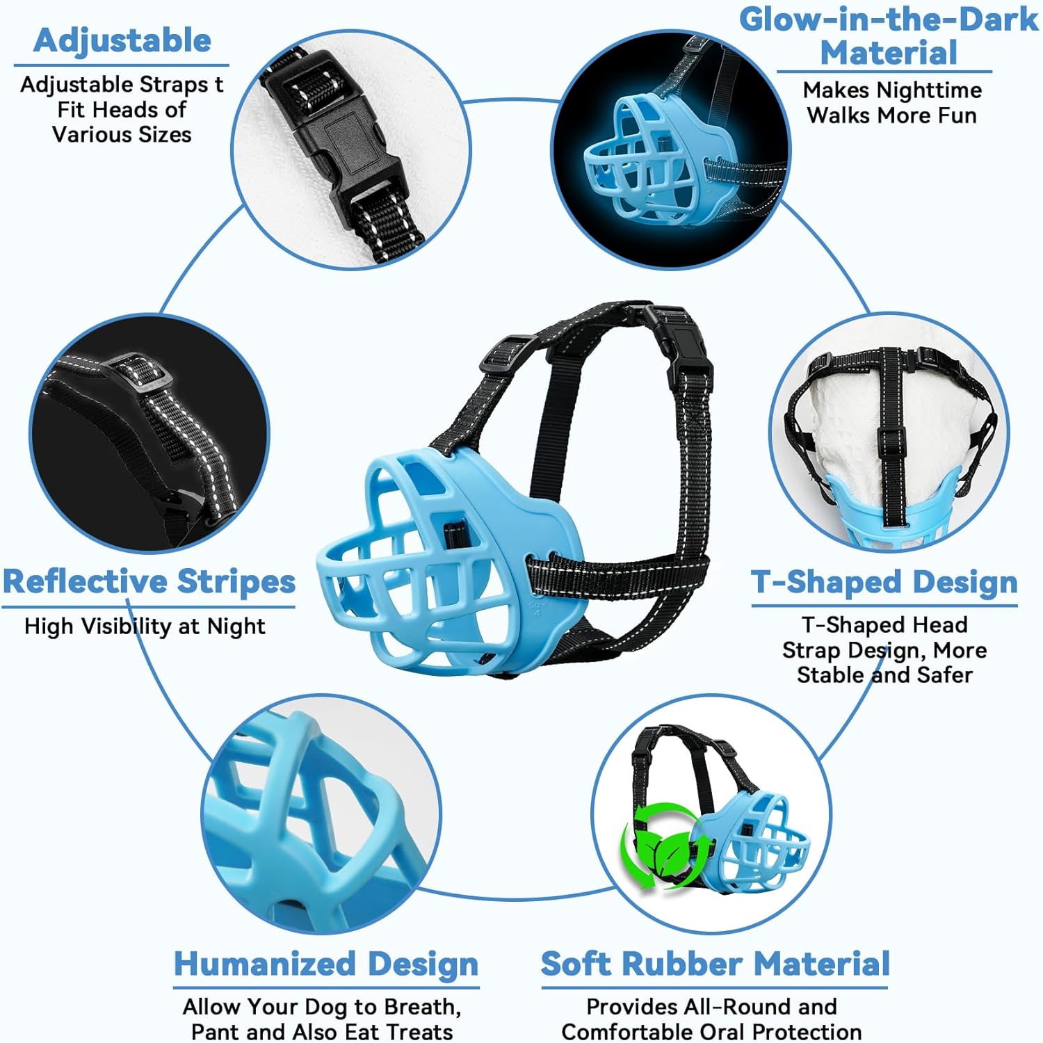 • Easy to Put on and Remove: Designed for Convenience, The Adjustable Straps on Our Dog Muzzle Allow for Quick and Secure Fitting. The Ergonomic Design Ensures a Hassle-Free Experience for Both You and Your Dog, Making it Ideal for Daily Walks, Training Sessions, Or Visits to the Vet. Reflective Strap Design Provides Night Travel Safety