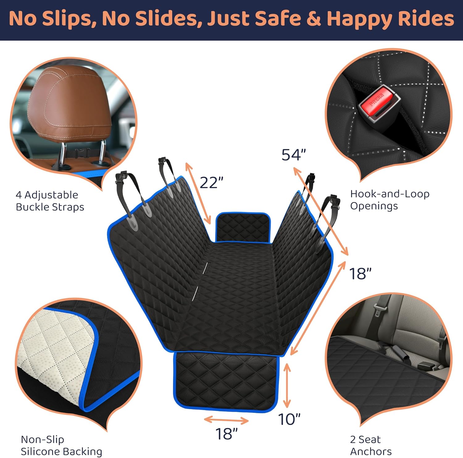 Dog Car Seat Cover for Back Seat, Waterproof Hammock for Car, SUV & Truck, Non-Slip Backseat Cover for Dogs, Heavy-Duty Dog Hammock Style Seat Protector Pets, Easy to Install & Clean