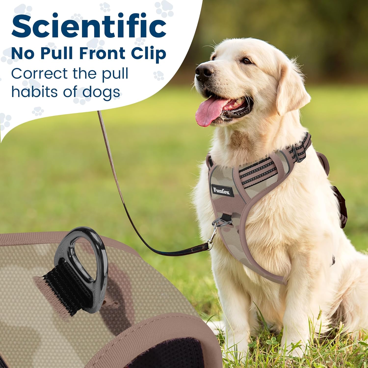 Funfox Dog Harness No Pull, Adjustable Pet Vest Harness, Super Soft Material with Vertical Handle Easy Control, Reflective Night Walking, 2 Leash Clips for Small Sized Dogs, Camo Brown, S