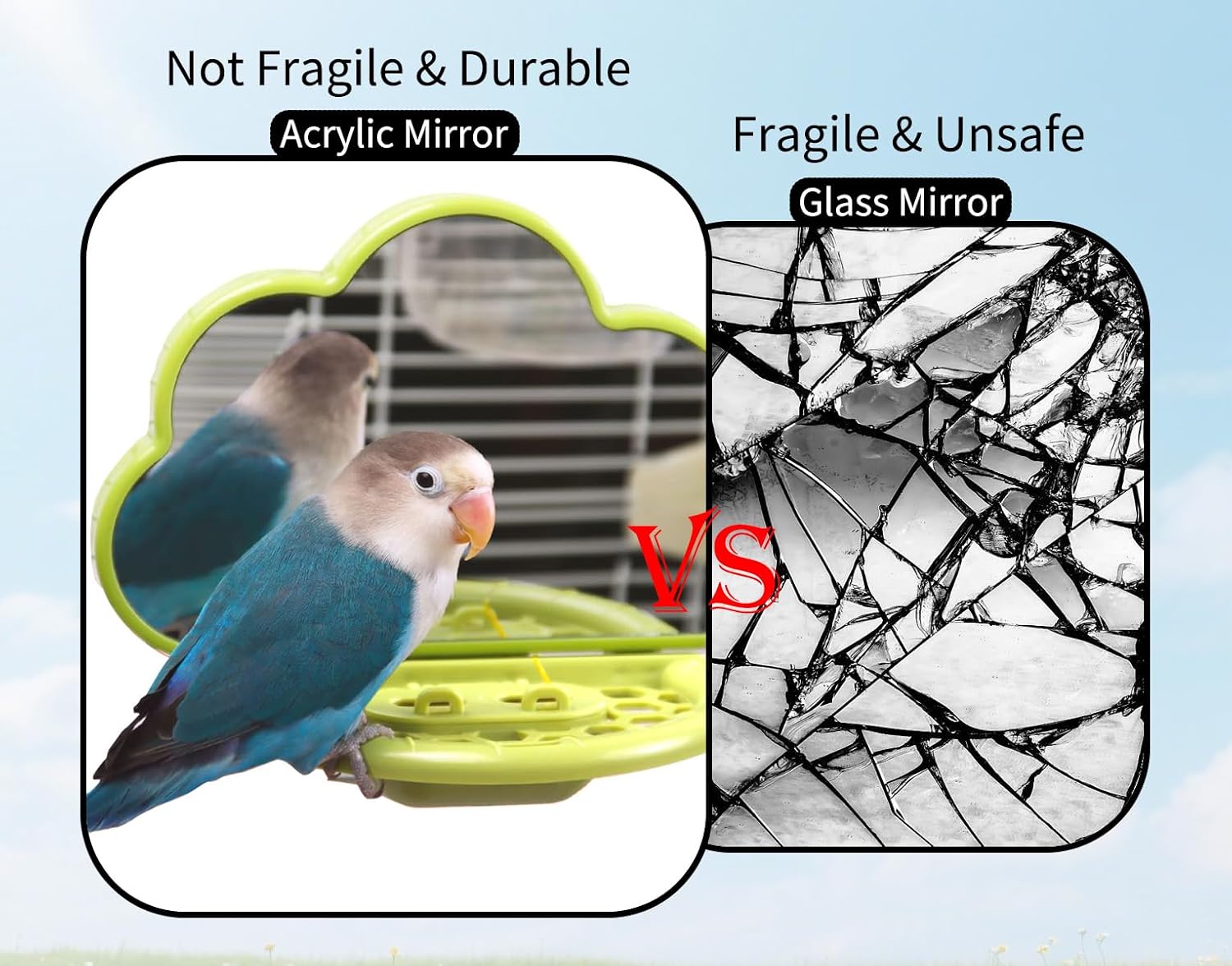 • Safe & Durable Design with Protective Edging: Unlike fragile glass, this acrylic mirror has rounded safe edges to prevent scratches. Durable and bird-friendly, giving your feathered friend a safe toy they can interact with every day.