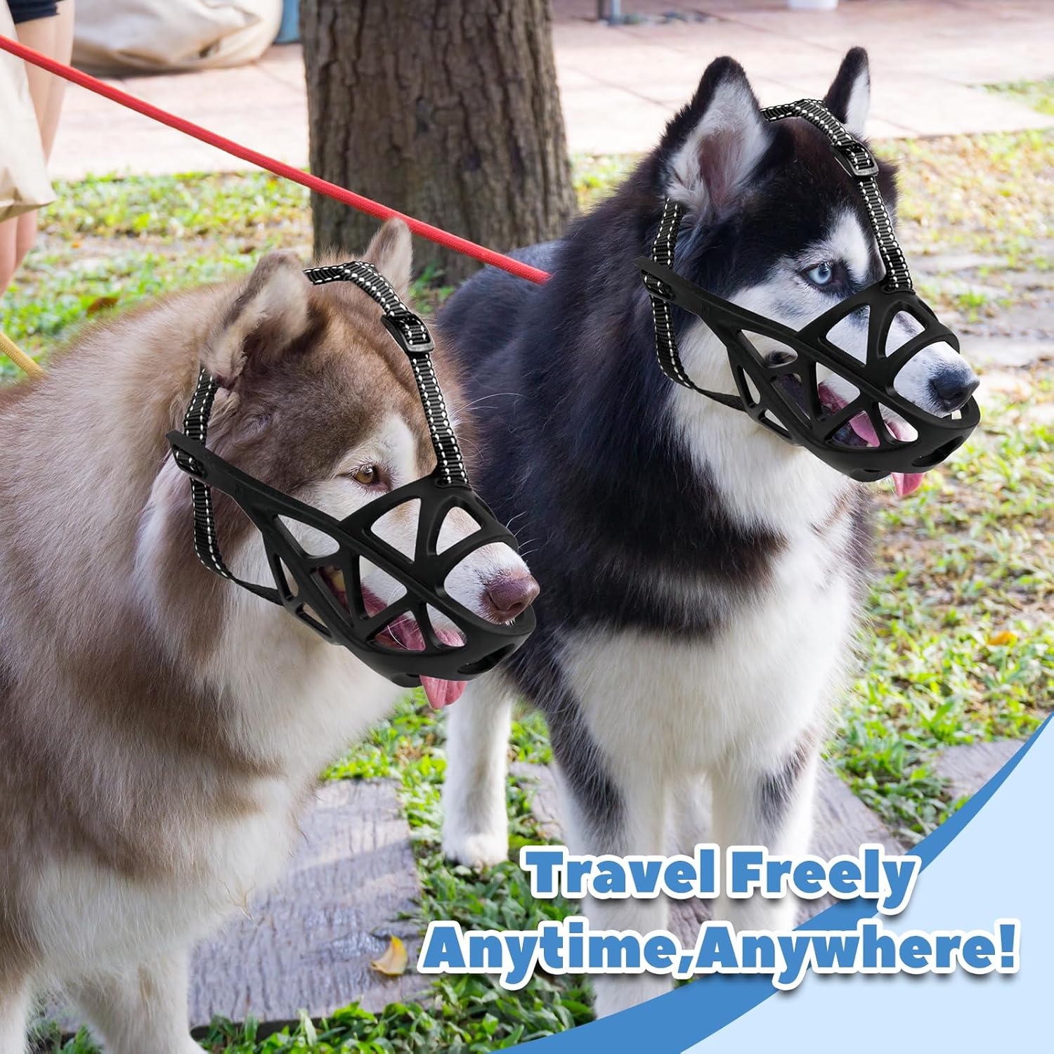 • Quick & Secure Fit with Reflective Straps: Putting the muzzle on and taking it off is a breeze thanks to the adjustable, user-friendly strap system. Designed for a snug and secure fit, it stays in place even during active moments. The built-in reflective straps add extra safety for nighttime walks or low-light environments.