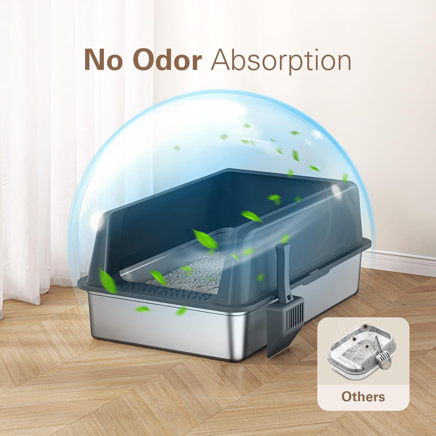 • 【Sturdy Stainless Steel Build】: Constructed from thick stainless steel for added durability, the XXL stainless steel litter box is designed to withstand daily use, resisting rust and scratches from cat paws. The non-porous nature feature of extra large stainless steel litter box also prevents odors from lingering, extending the lifespan and reducing the need for frequent replacement