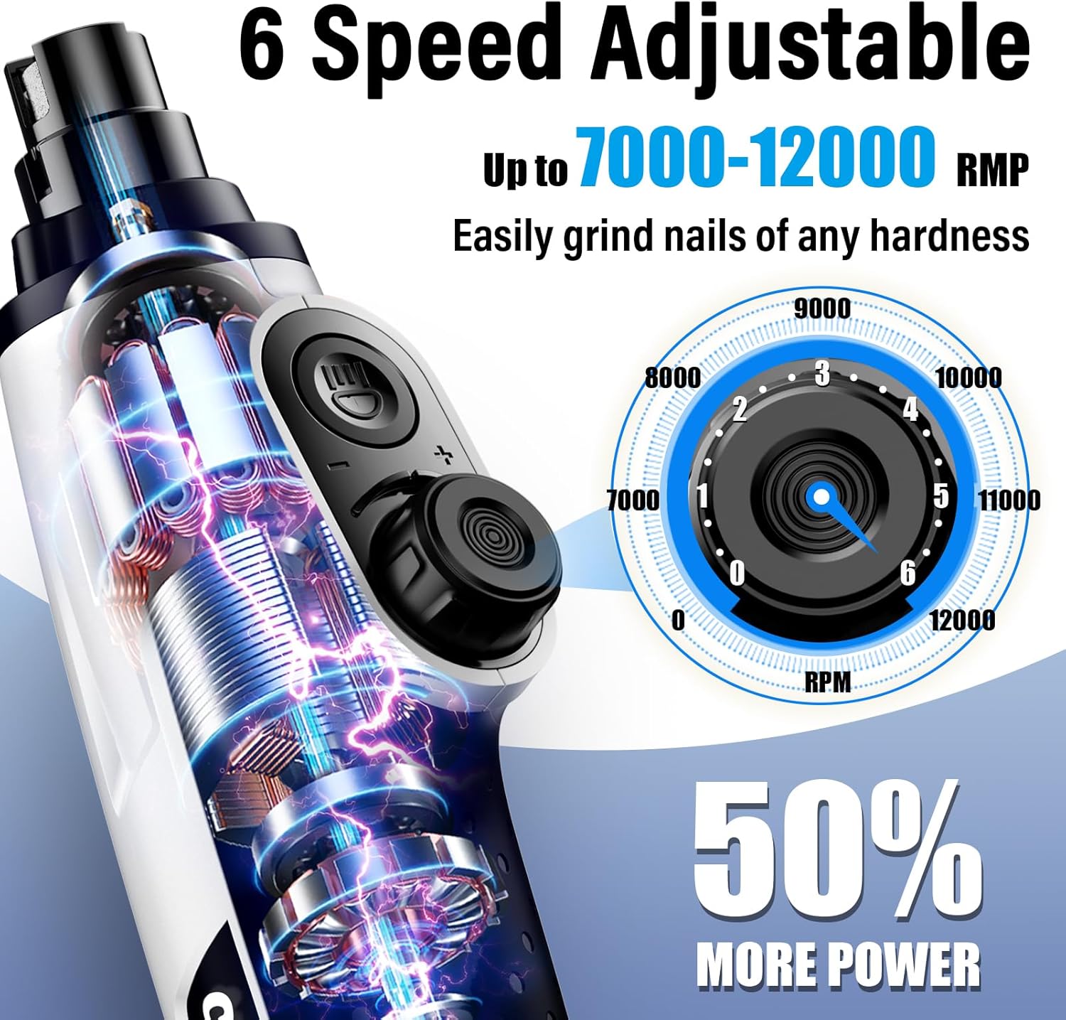• 【Adjustable 6 Speeds for Perfect Precision】 With speeds from 7000 to 12000 RPM, the Casfuy electric dog nail file is one of the most powerful on the market. It offers 6 speed levels, each featuring 9 variable power settings. The smart optimization ensures that every speed delivers the ideal power for small, medium, and large pets’ nail care. Experience the perfect blend of power and precision.