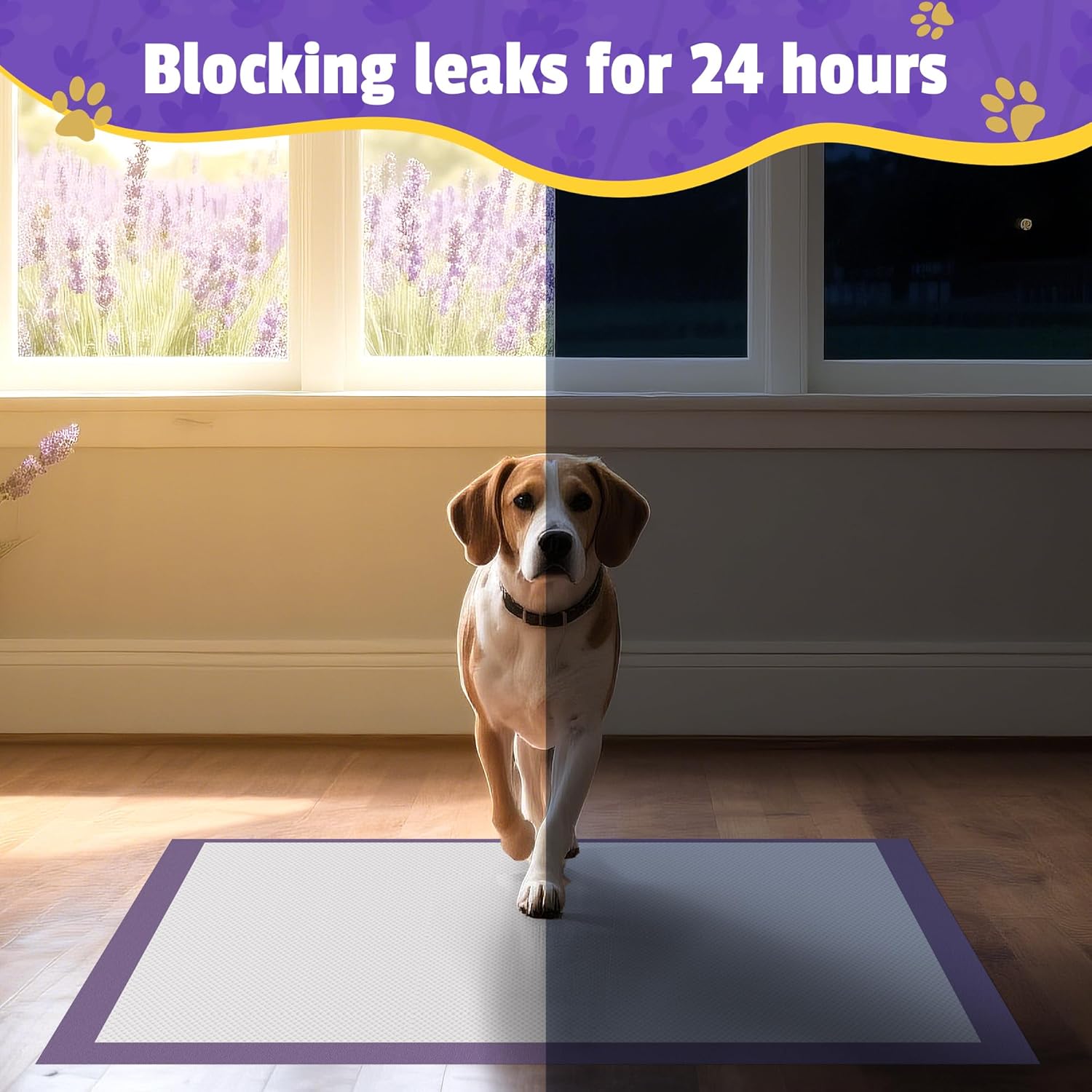 • 【Lavender Scented Odor Control Puppy Pads】Lavender-scented pee pads for dogs, natural fragrance serves a dual purpose by effectively concealing urine odors and introducing a refreshing, rather than simply covering up the urine smell, aromatic atmosphere to your surroundings. The long-lasting pleasant lavender scent leaves your home smelling fresh and clean.