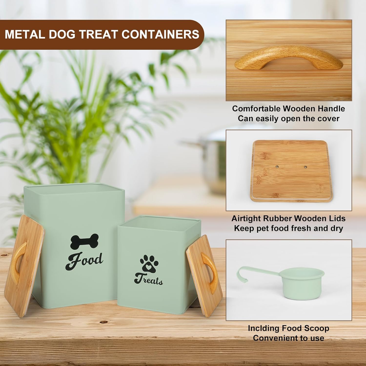 • DURABLE & STURDY MATERIAL - Dog food storage cans are made of metal and will not be easily broken and can be used for a long time. Dog treat container for countertop is coated with a food grade coating to prevent corrosion and rust, making it a great storage option for dog food