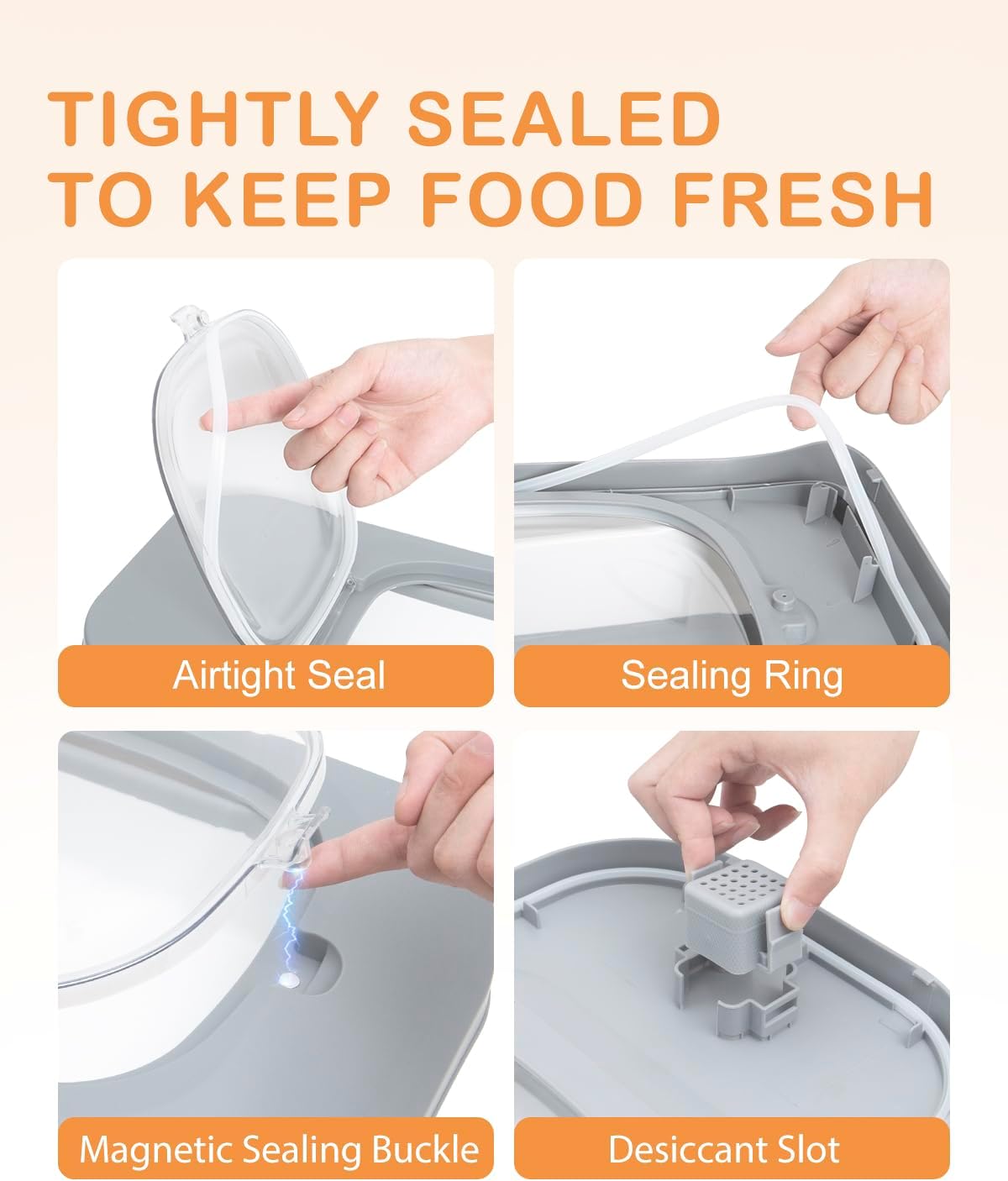 • Airtight Sealing Design: These airtight dog food bins feature a double air-tight seal, ensuring your pet food stays fresher longer, free from moisture
