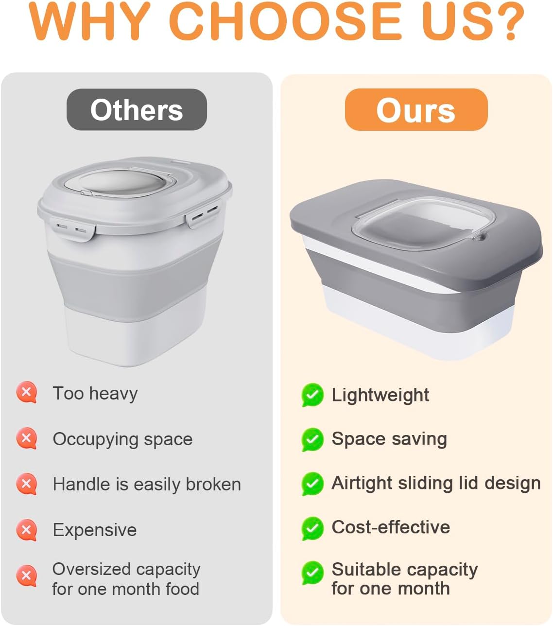 • Space Saving: Our pet food container is collapsible and can be resized to pet food storage as needed. Whether at home or on the go, it’s designed to make pet care easier and more enjoyable