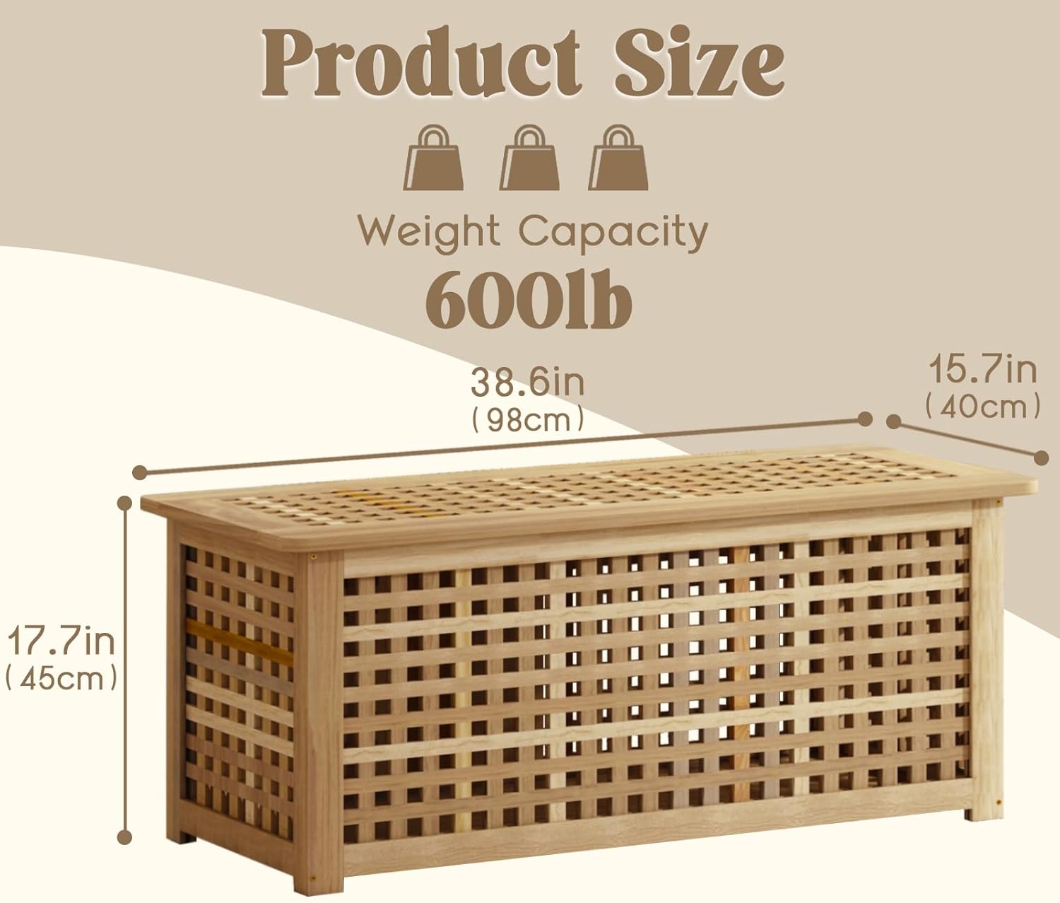 • Holds Everything You Need:At 15.7" D x 38.6" W x 17.7" H (40 x 98 x 45 cm), this bench with storage offers a whopping 40 gallons (150L) of storage space. Toss in blankets, books, shoes, toys, or even bathroom essentialsβ€”this storage bench has room for it all!