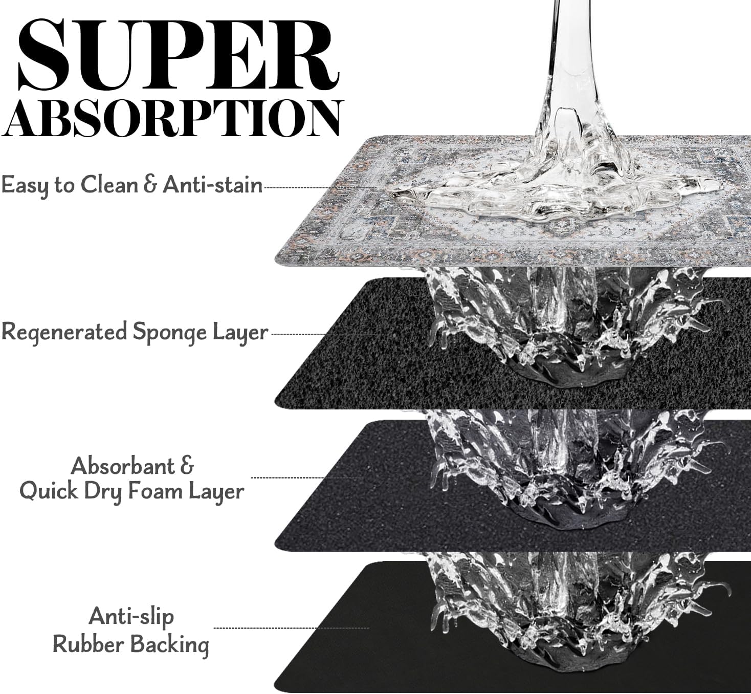 • Super Absorption: The dog mat for water bowl can absorb spilled water without leaving traces and dry quick, avoid wetting pet paws even for messy drinkers. And it does not attract pet hair like traditional silicone dog bowl mat.