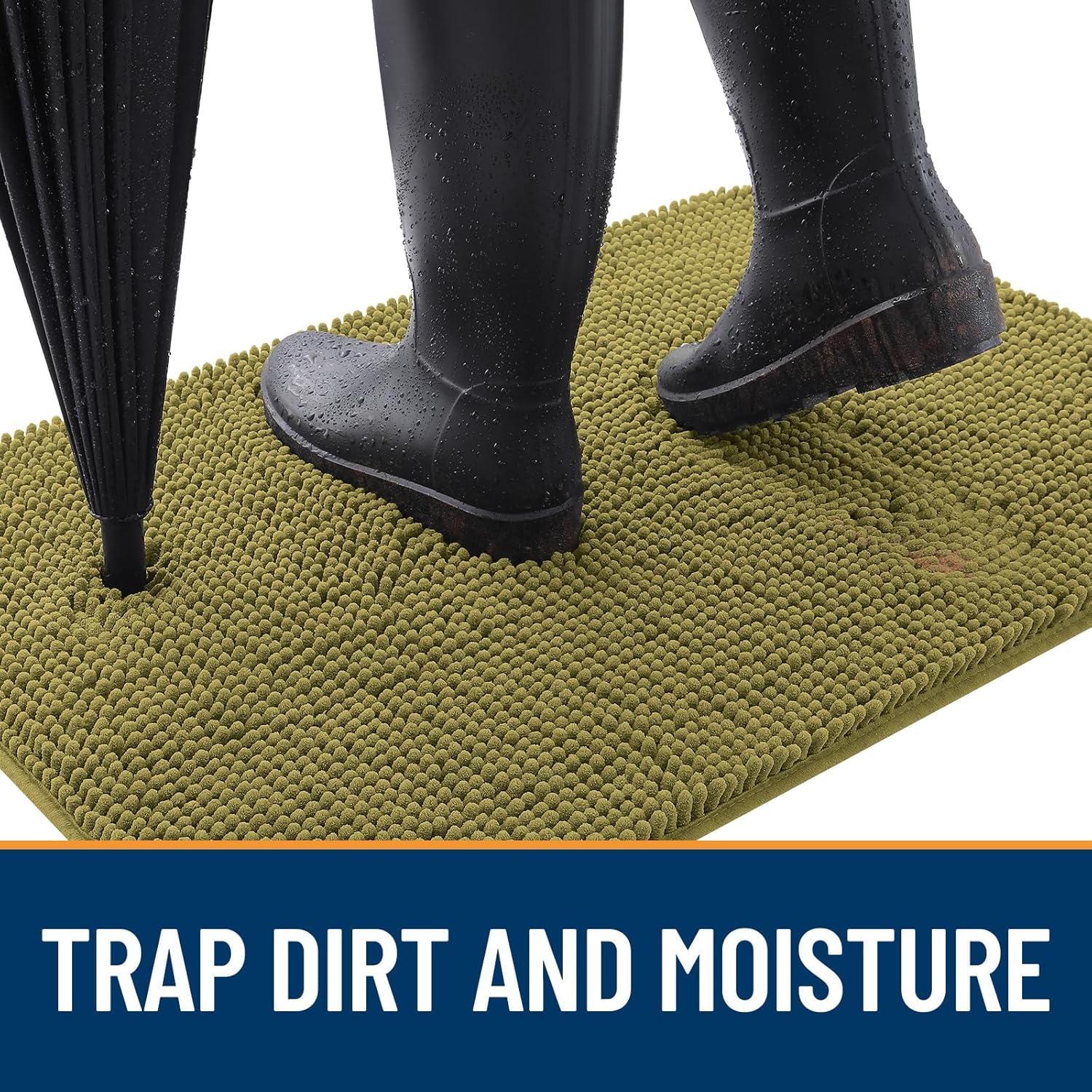 OLANLY Dog Door Mat for Muddy Paws 24x16, Absorbs Moisture and Dirt, Absorbent Non-Slip Washable Doormat, Quick Dry Chenille Mud Mat, Entry Indoor Entryway Carpet for Inside Floor, Willow Green