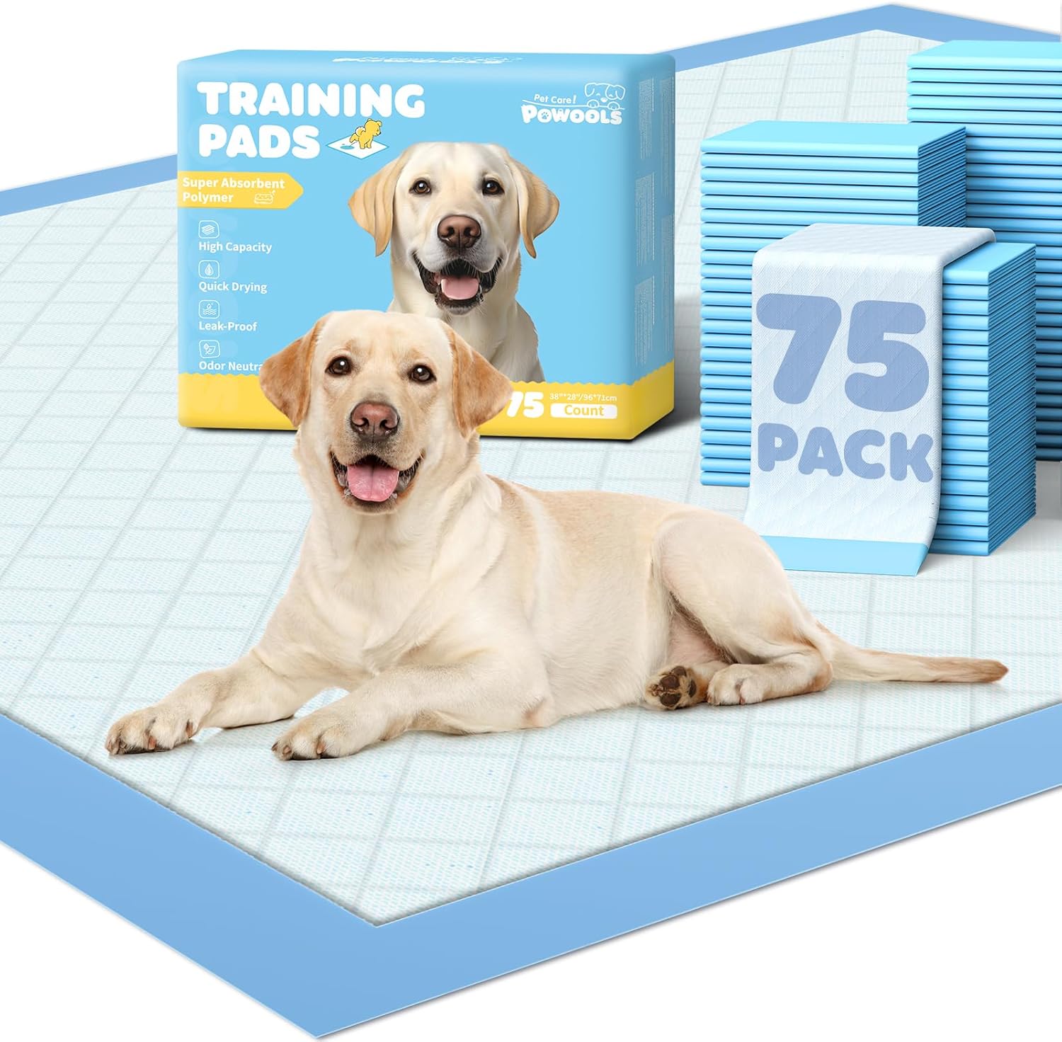• COST-EFFECTIVE BULK PACK: With a spacious 38"x 28" size and 75-packs bulk set, Powools pee pads for dogs large require fewer changeouts than standard pads. The large size and bulk supply provide extended use between refills, saving you time and hassle.
