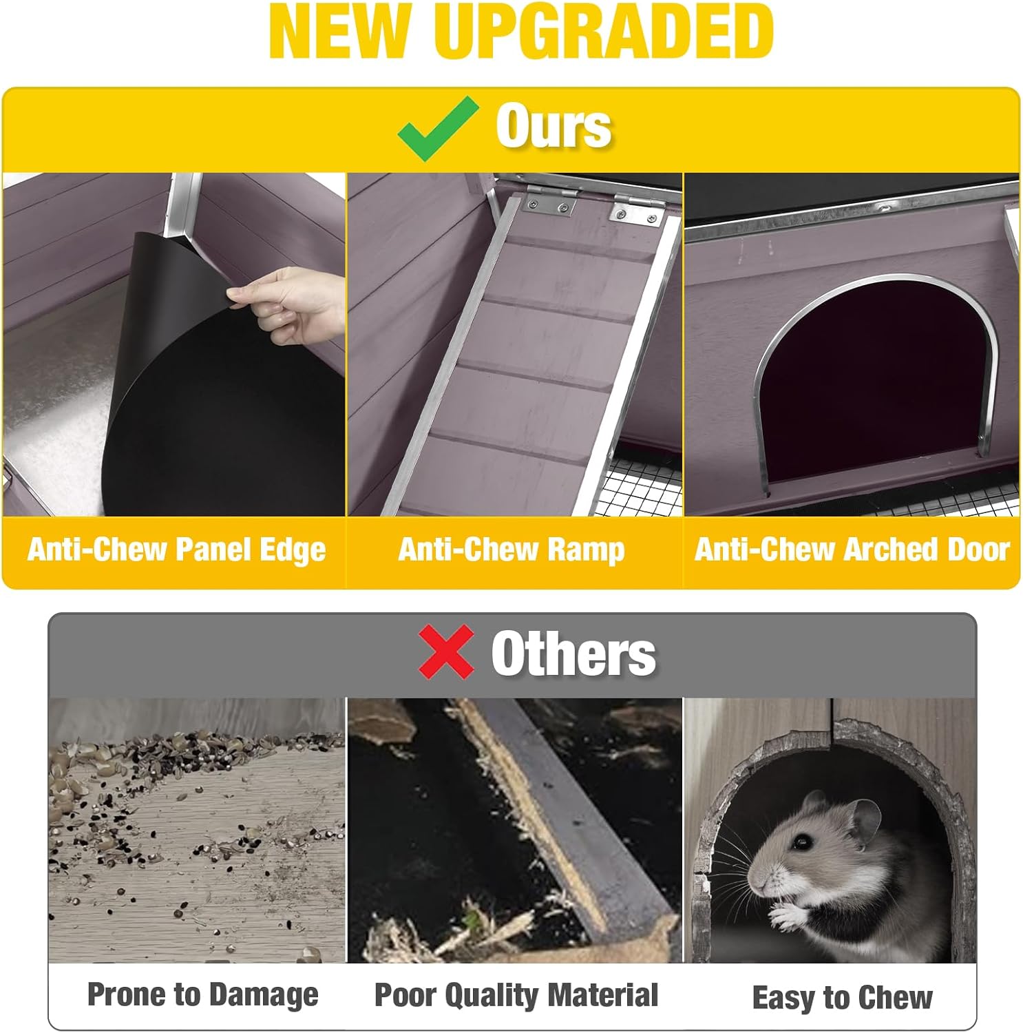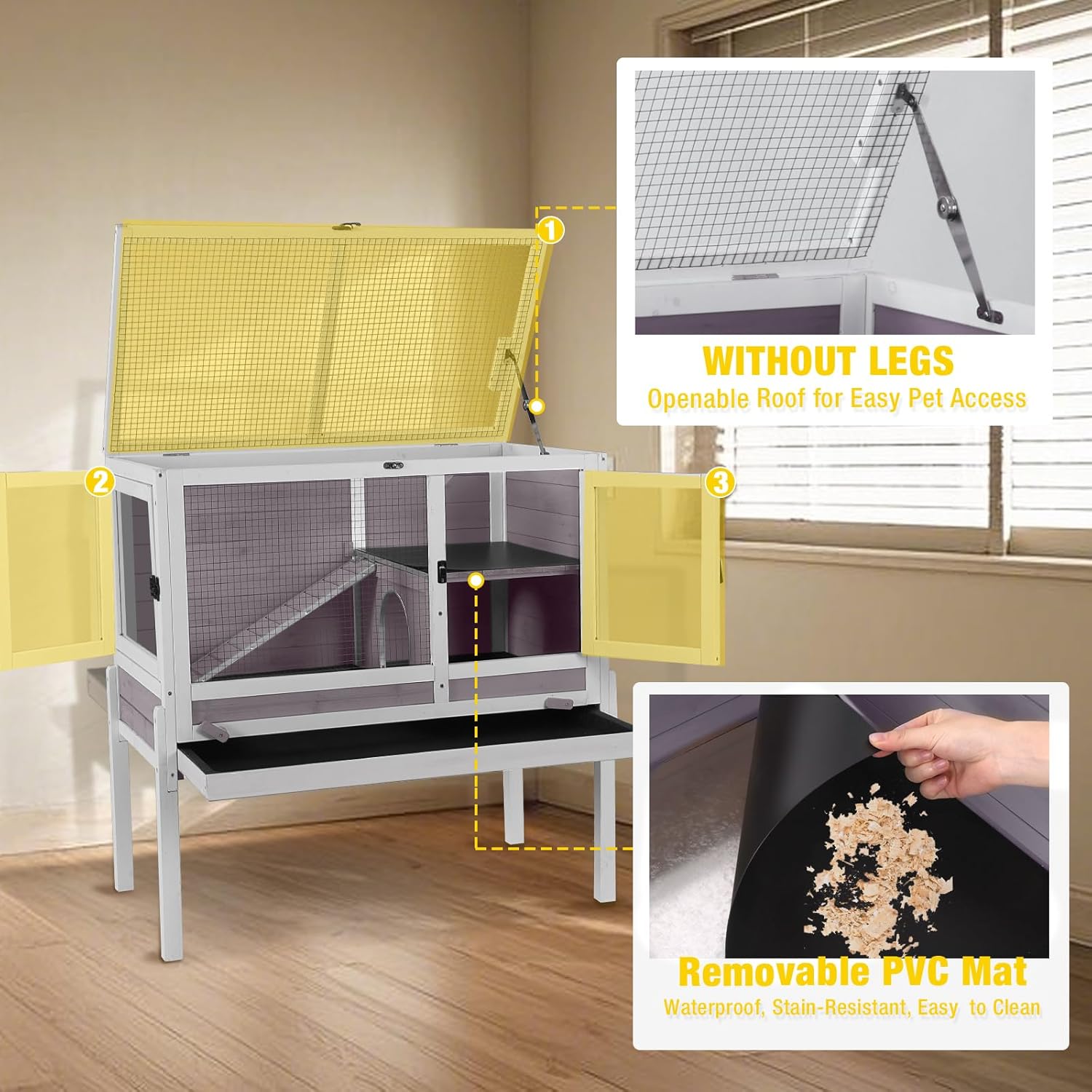 • 2-in-1 Multi-Level Design: Features distinct sleeping, dining, bathroom, and play areas. Spacious second floor (36.6"L x 19.6"W) provides ample room for 1 rabbit and 1-2 small pets.