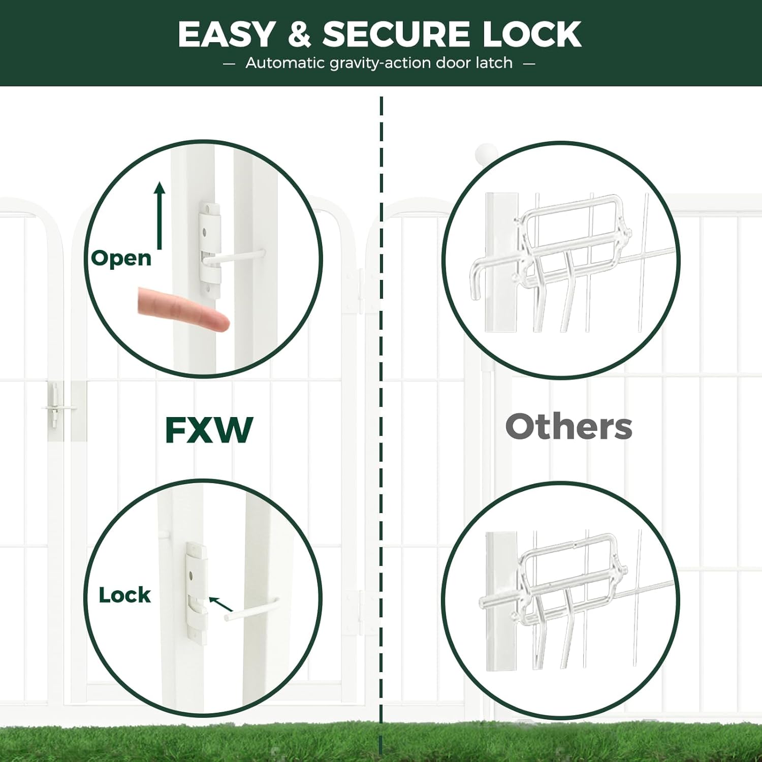 • Multi-scenario use: The FXW dog playpen features a powder coating that will help protect against rust and extend its life, which makes it ideal for RV camping, traveling, or for use in the yard. When used indoors, we recommend placing it on a dog pad or carpet to prevent the rods from scratching the floor, or please try our new floor protectors or dog pee pad for the same purpose.